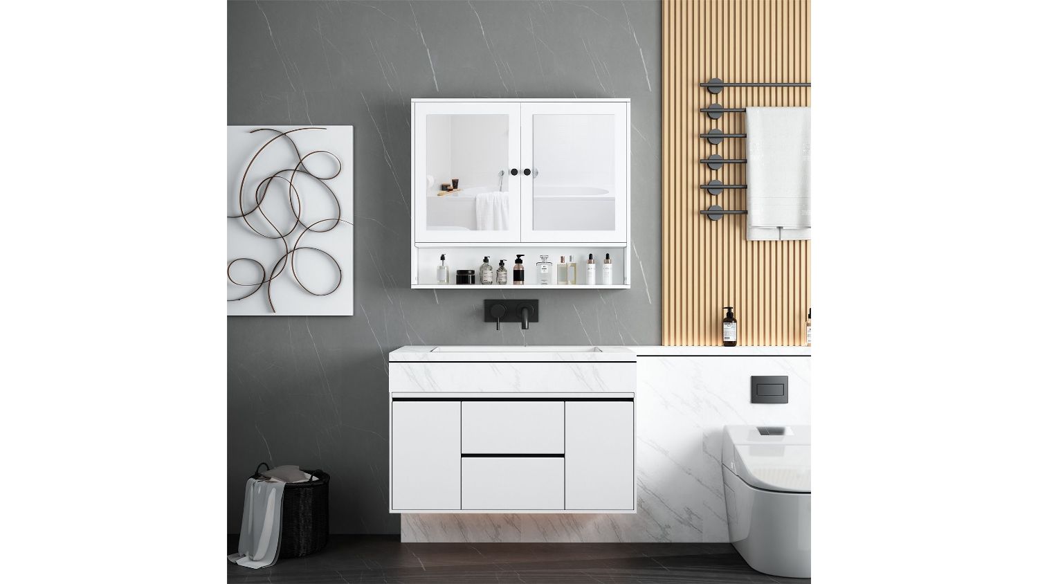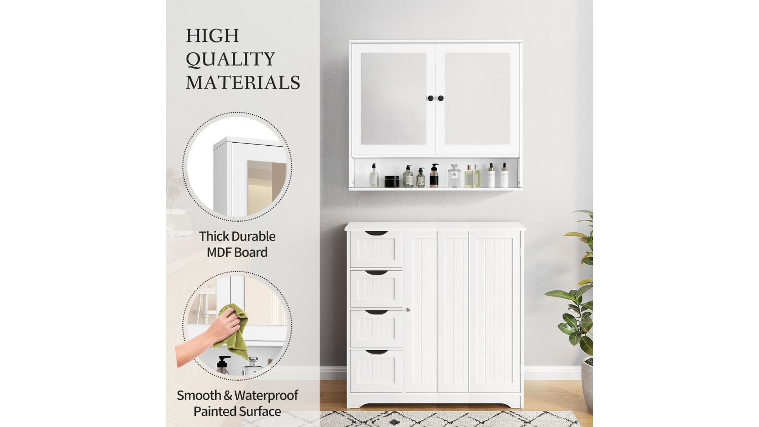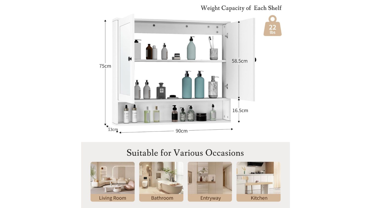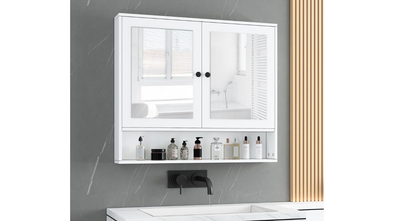 The Luxsuite Wall Mounted Toiletries Cabinet with Mirror combines smart storage with premium build quality. Crafted from a strong 15mm particleboard, it supports heavy bathroom essentials. The three HD glass doors offer undistorted clarity—ideal for shaving, makeup, or hairstyling. Inside, two spacious compartments hold everything from towels to shampoos, while the open shelf provides quick access to frequently used items. With easy installation and a clean, modern look, it’s the perfect upgrade for any bathroom.