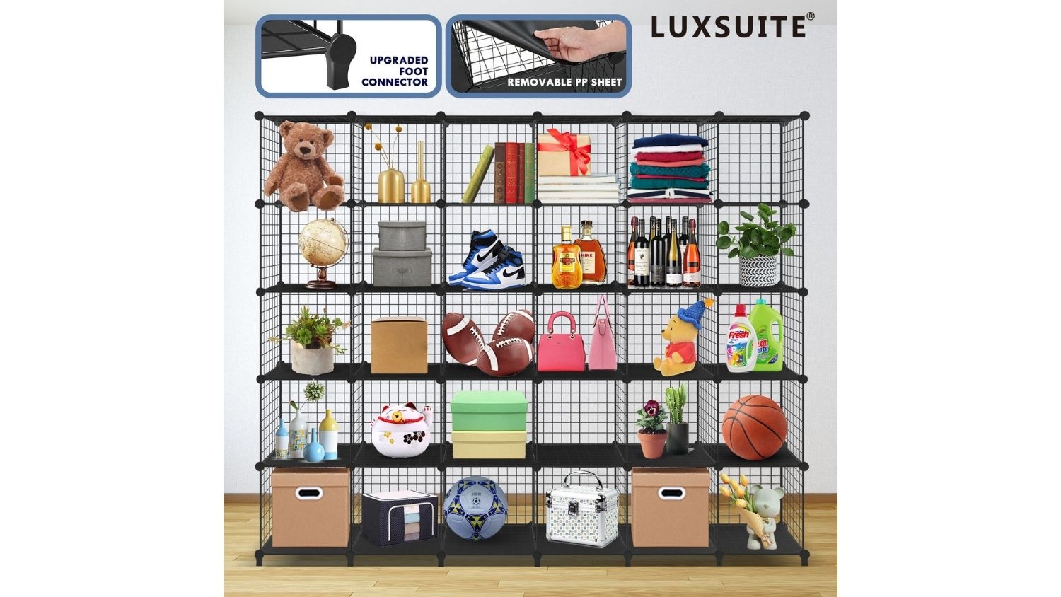 The Luxsuite 30 Cube Wire Storage Grid gives you flexible, spacious storage for everything from clothing and books to toys, craft supplies, and household essentials. Its modular design lets you customise the configuration to perfectly suit your room layout and organising goals. Built with strong metal wire panels and durable connectors, it provides reliable support once assembled.