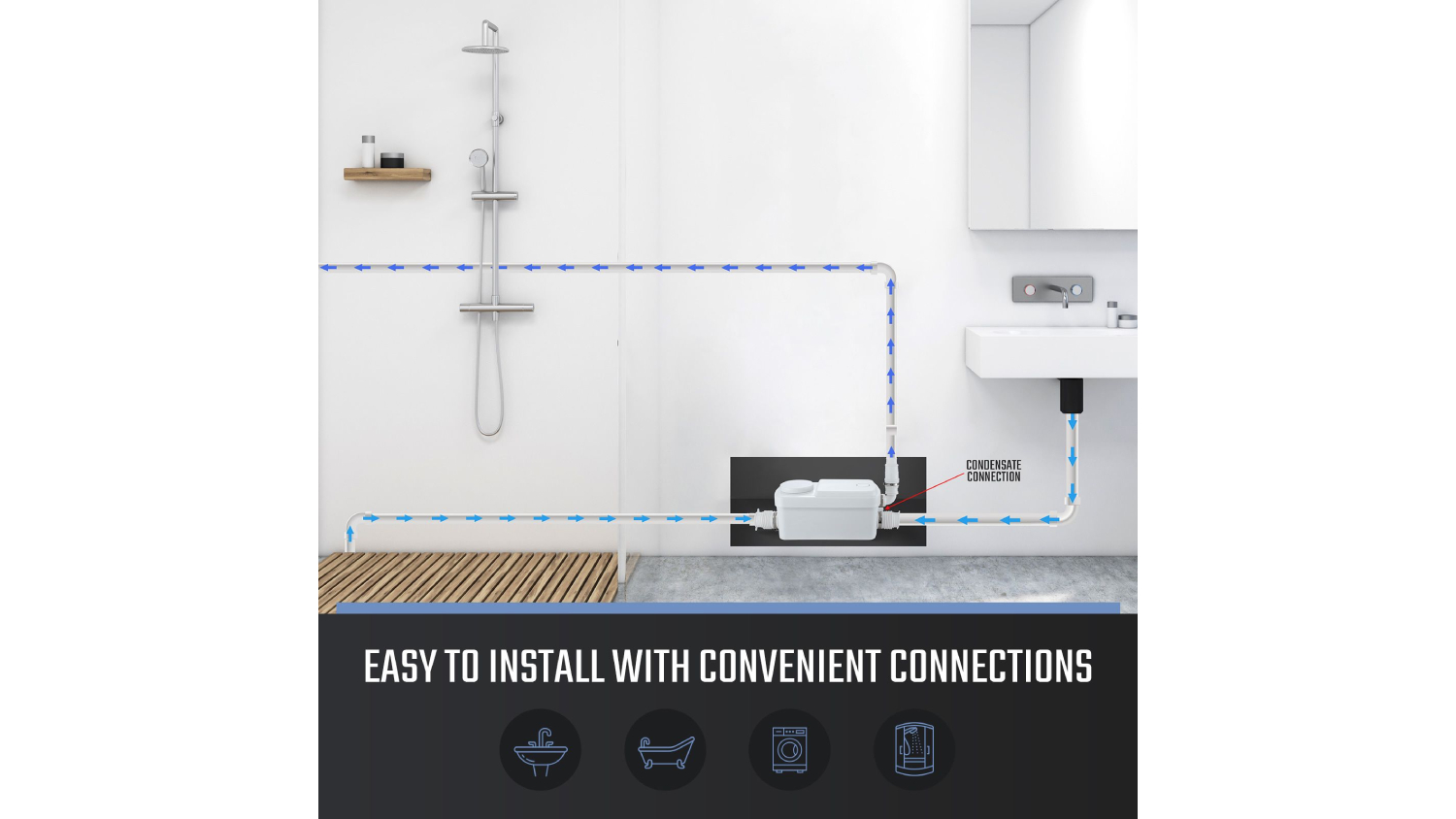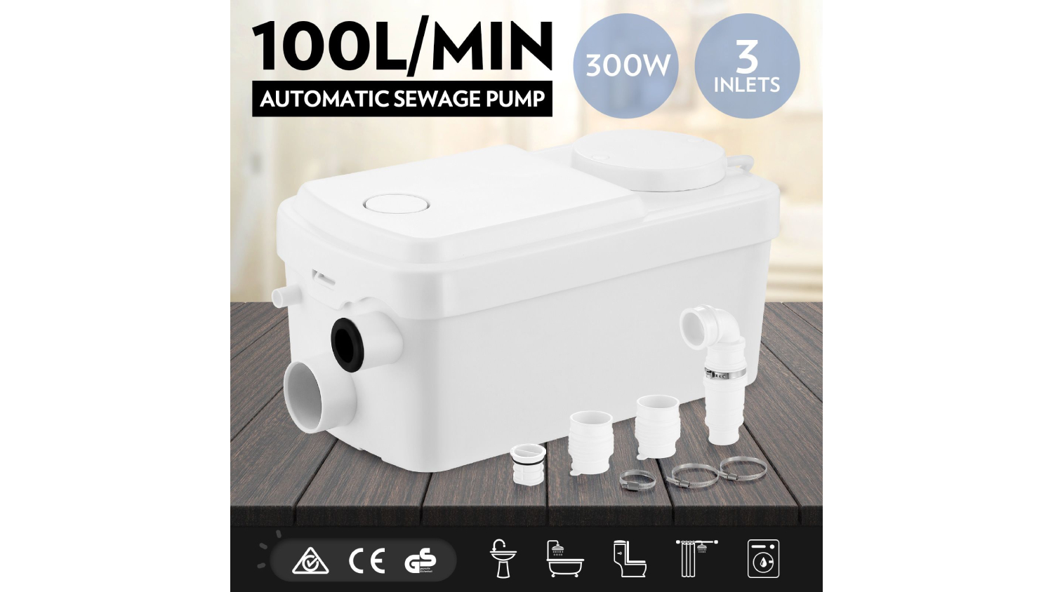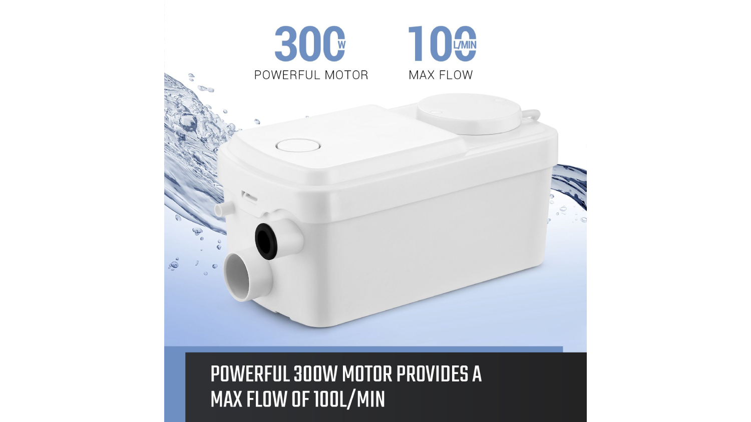Say goodbye to sewage hassles with the Maxkon Automatic Sewer Macerator Pump 300W—a compact, powerful and ultra-reliable solution for your bathroom or utility area. This fully automatic pump manages waste from multiple sources, activating effortlessly on flush to deliver fast and efficient performance. With a quiet 300W motor pushing up to 100 litres per minute and supporting long-distance pumping (6.5m vertical, 60m horizontal), it’s built for convenience and power. The multi-size fittings make setup quick, while the anti-backflow valve and stainless-steel impeller blades offer hygienic, durable operation.
