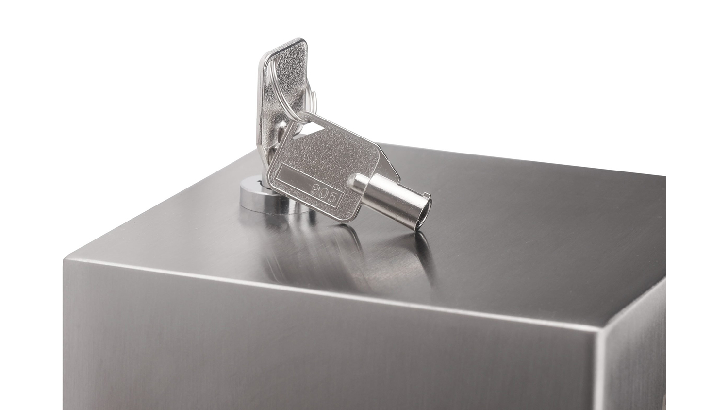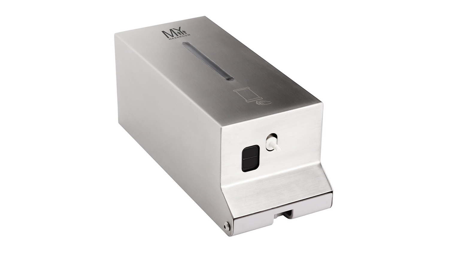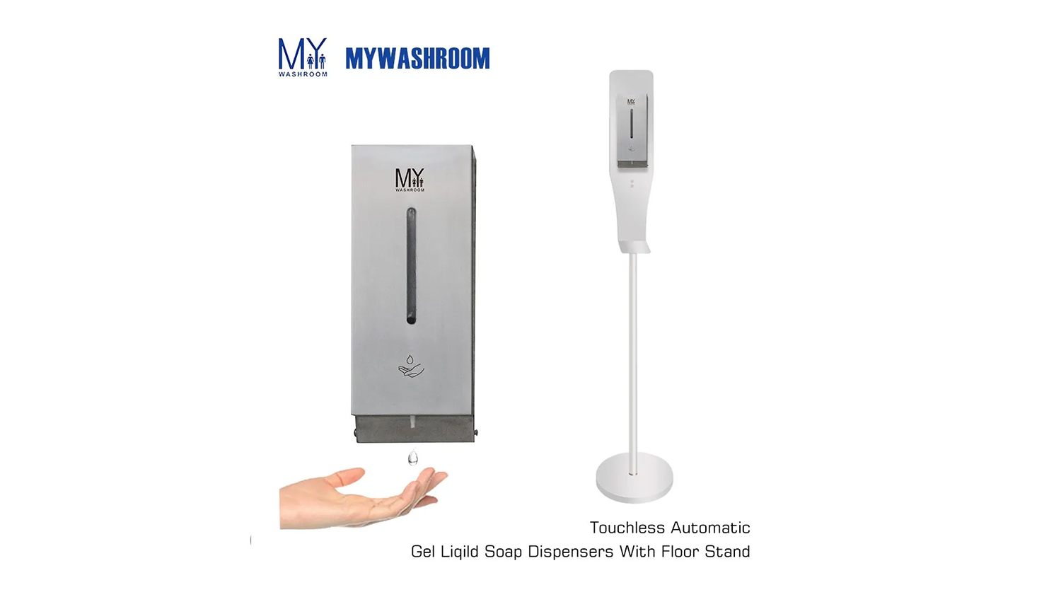 Experience effortless hygiene with the MyWashroom Automatic Touchless Stainless Steel Soap Dispenser with White Floor Stand. This touch-free dispenser combines infrared sensing with a robust anti-theft lock to ensure security and peace of mind. It also offers an 800ml capacity, making it perfect for busy commercial spaces.