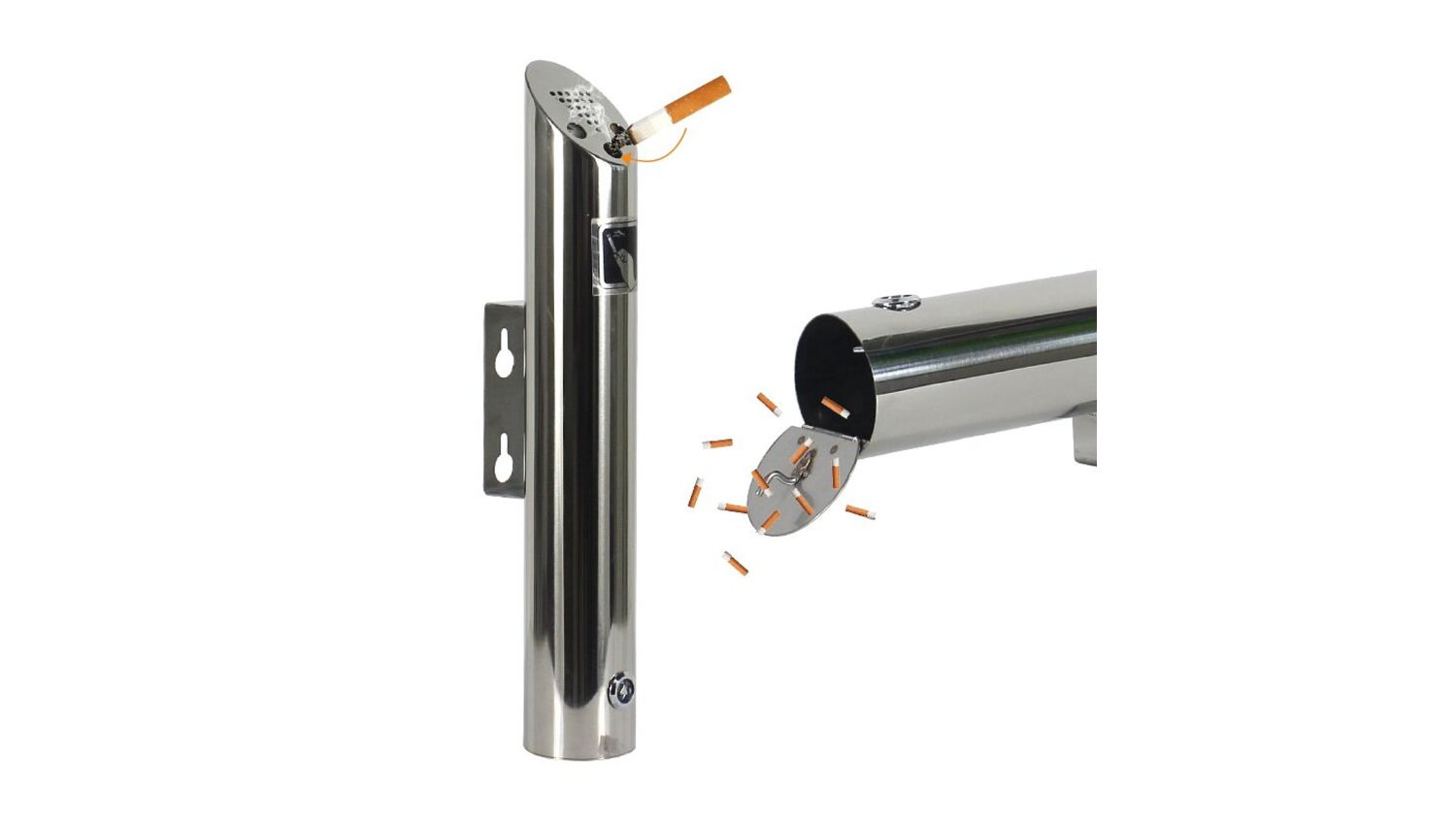 Make outdoor cleanliness effortless with the MyWashroom Outdoor Wall-Mounted Commercial Ashtray. Designed for commercial environments, this wall‑mounted ashtray combines durability and style thanks to its 304 stainless steel construction. It’s built to endure the outdoors while offering a clean, professional look. The lockable compartment allows quick emptying and keeps maintenance simple—perfect for office buildings, restaurants, and public parks.