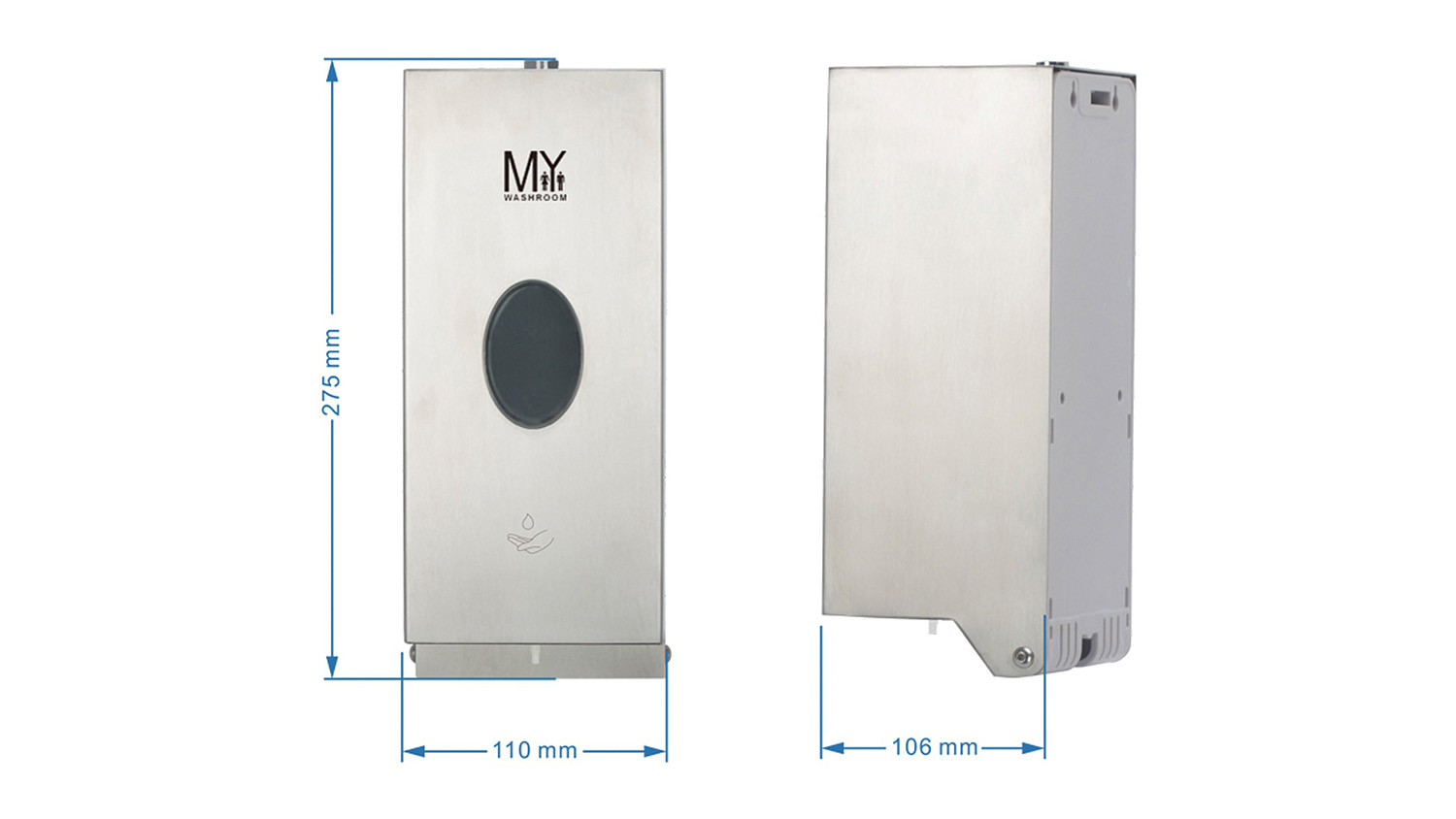 Ensure cleanliness and convenience with the MyWashroom Silver Automatic Soap Dispenser with Floor Stand. This touch-free dispenser combines infrared sensing with a robust anti-theft lock to ensure security and peace of mind. It also offers an 800ml capacity, making it perfect for busy commercial spaces.