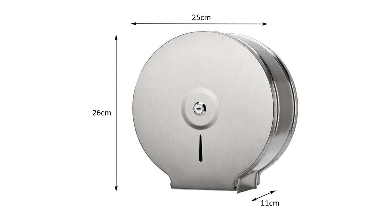 The MyWashroom Stainless Steel Round Toilet Paper Dispenser in silver is reliable, sturdy, and built for busy spaces. Crafted from premium stainless steel, this dispenser is engineered for longevity. It supports one jumbo tissue roll, comes with a locking mechanism for controlled access, and includes a clear window so you can monitor paper levels effortlessly. Its wall-mounted design makes it a practical, space-saving solution for any restroom.