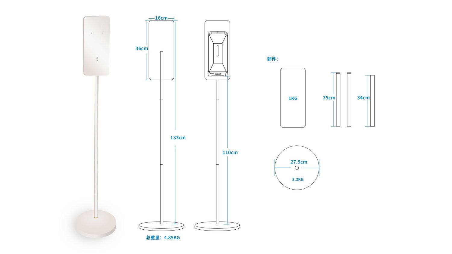 Keep your facility hygienic with the MyWashroom Touchless Automatic White Soap Dispensers with Floor Stand. This unit offers touchless infrared precision and works perfectly with both gel and liquid soaps. Its waterproof 304 stainless steel build is designed for maximum stability and long-term durability, ideal for use in hospitals, homes, and public spaces.