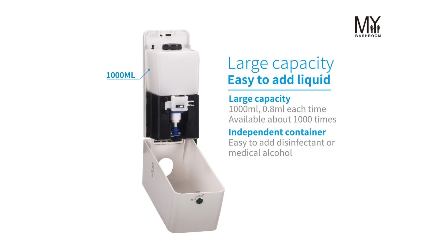 Keep your facility hygienic with the MyWashroom Touchless Automatic White Soap Dispensers with Floor Stand. This unit offers touchless infrared precision and works perfectly with both gel and liquid soaps. Its waterproof 304 stainless steel build is designed for maximum stability and long-term durability, ideal for use in hospitals, homes, and public spaces.
