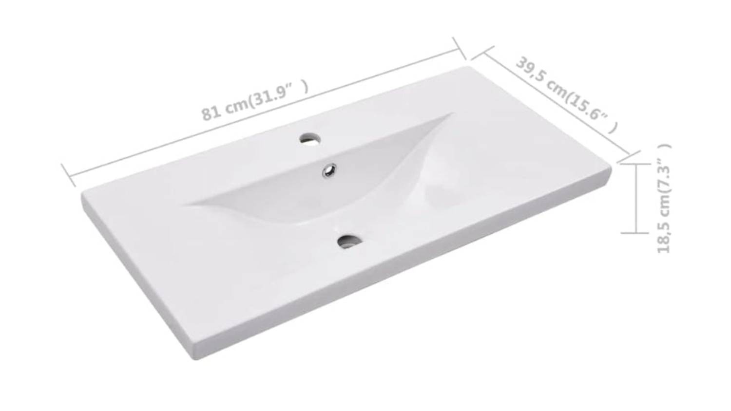 NNEVL Square Ceramic Basin with Built-In Overflow 81 x 39.5 x 18.5cm - White