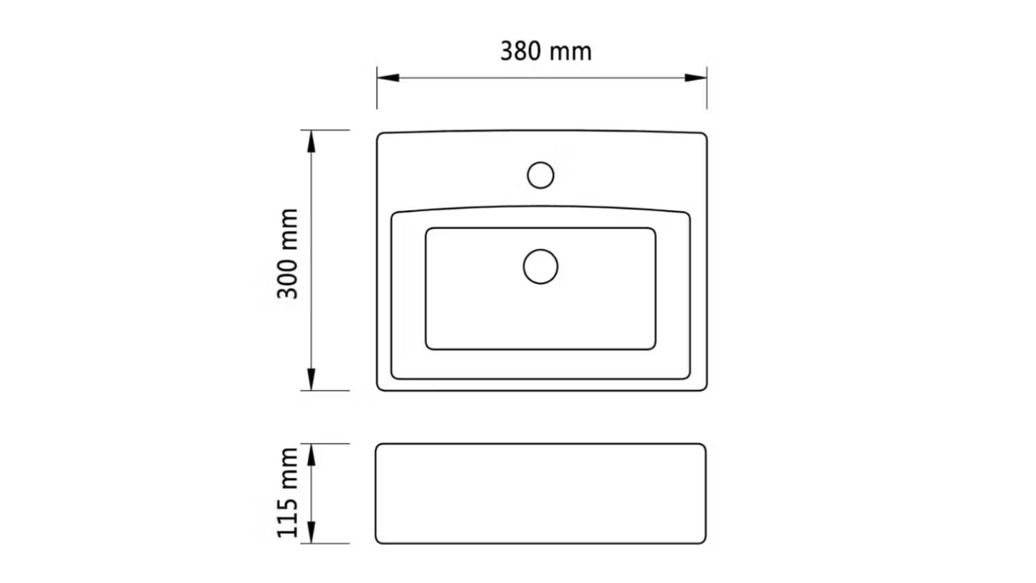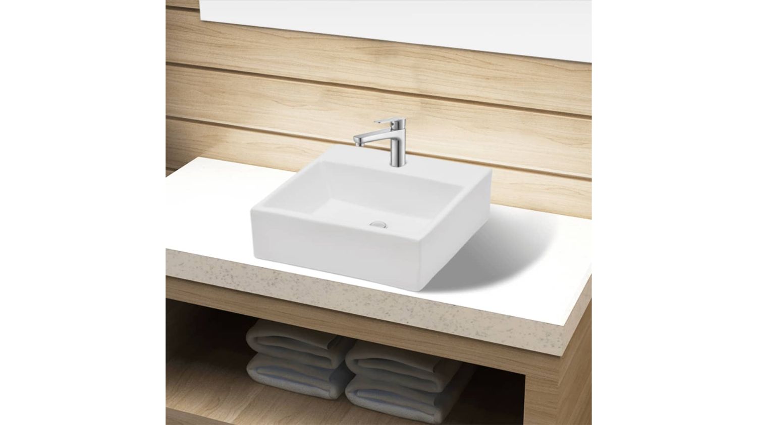 NNEVL Square Ceramic Basin with Faucet Hole 38 x 30 x 11.5cm - White