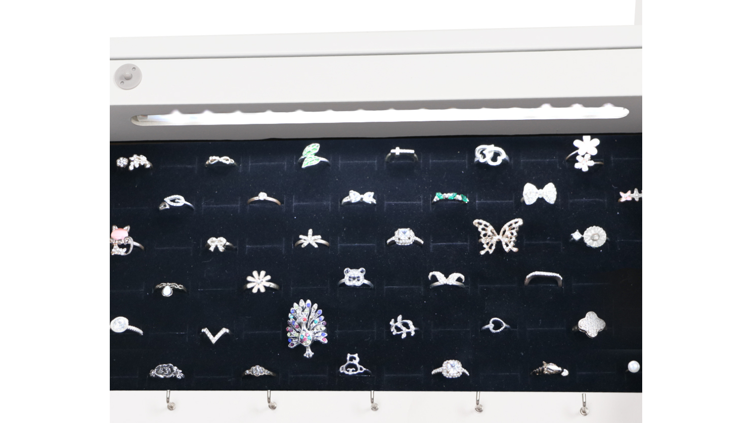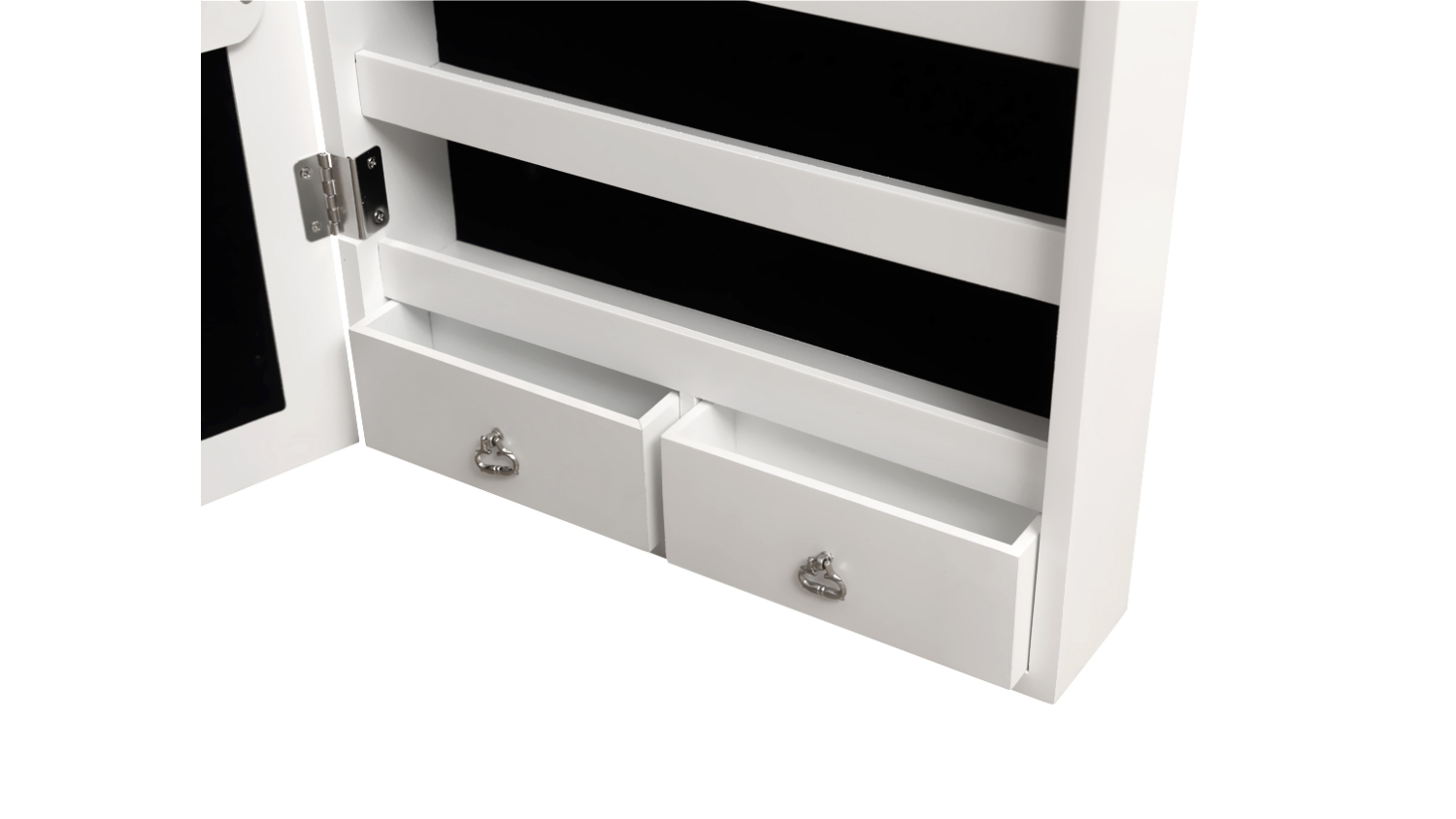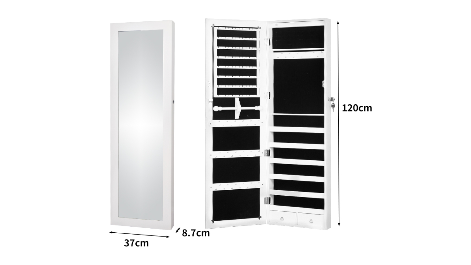 Meet the Pretty and Practical Battery Powered Mirror with LEDs and Integrated Jewellery Box, your new favourite getting‑ready companion! This full‑length dressing mirror doesn’t just help you perfect your outfit; it also keeps your accessories beautifully organised with multiple trays, shelves, and hooks for earrings, necklaces, bracelets, rings, and more. It’s designed for bedrooms and dressing rooms, with soft LED lighting and a clean white finish.