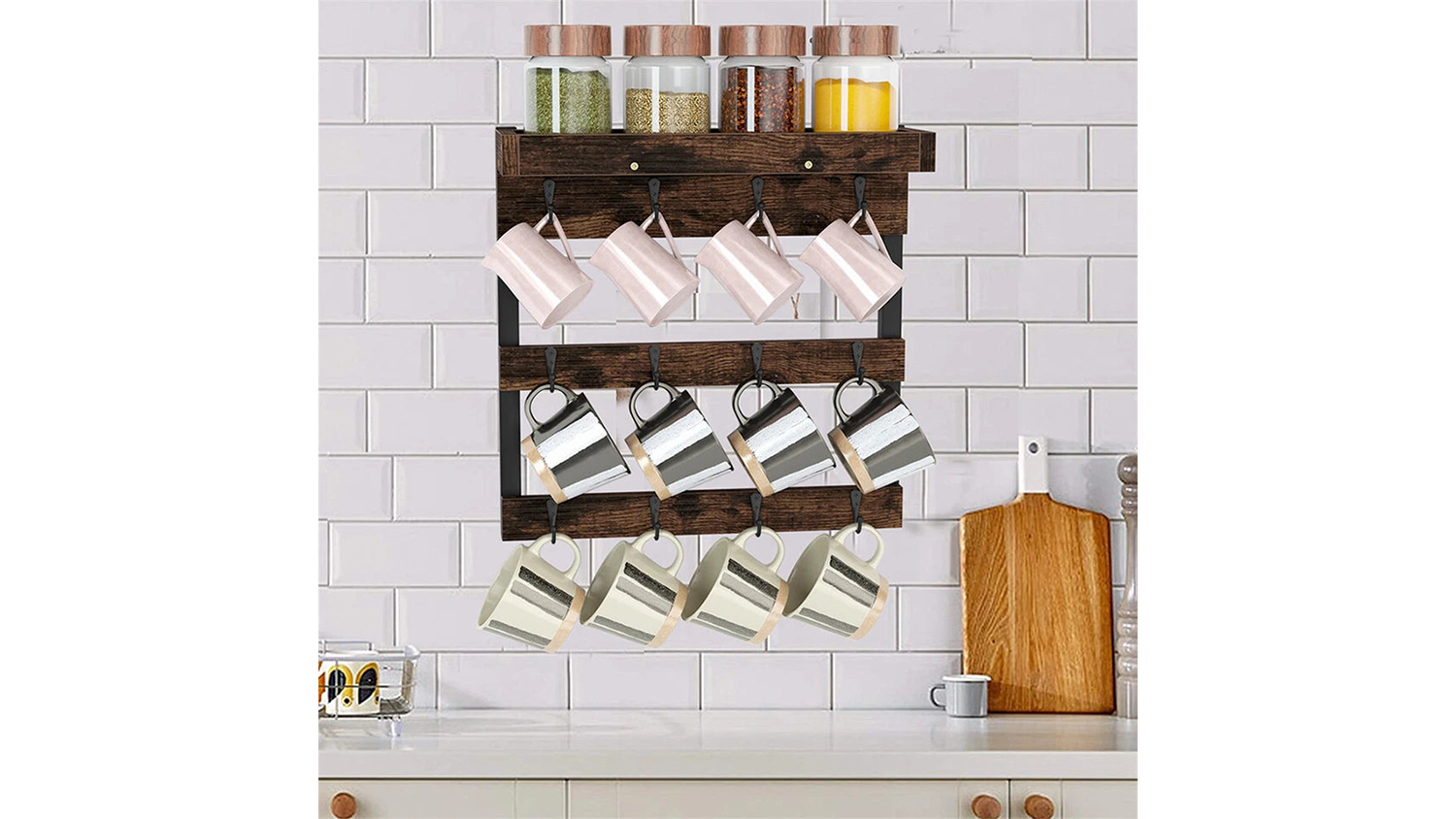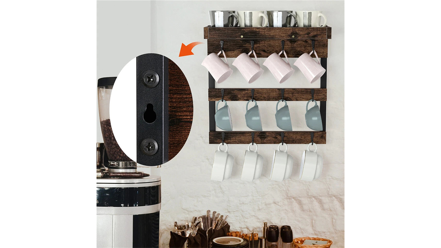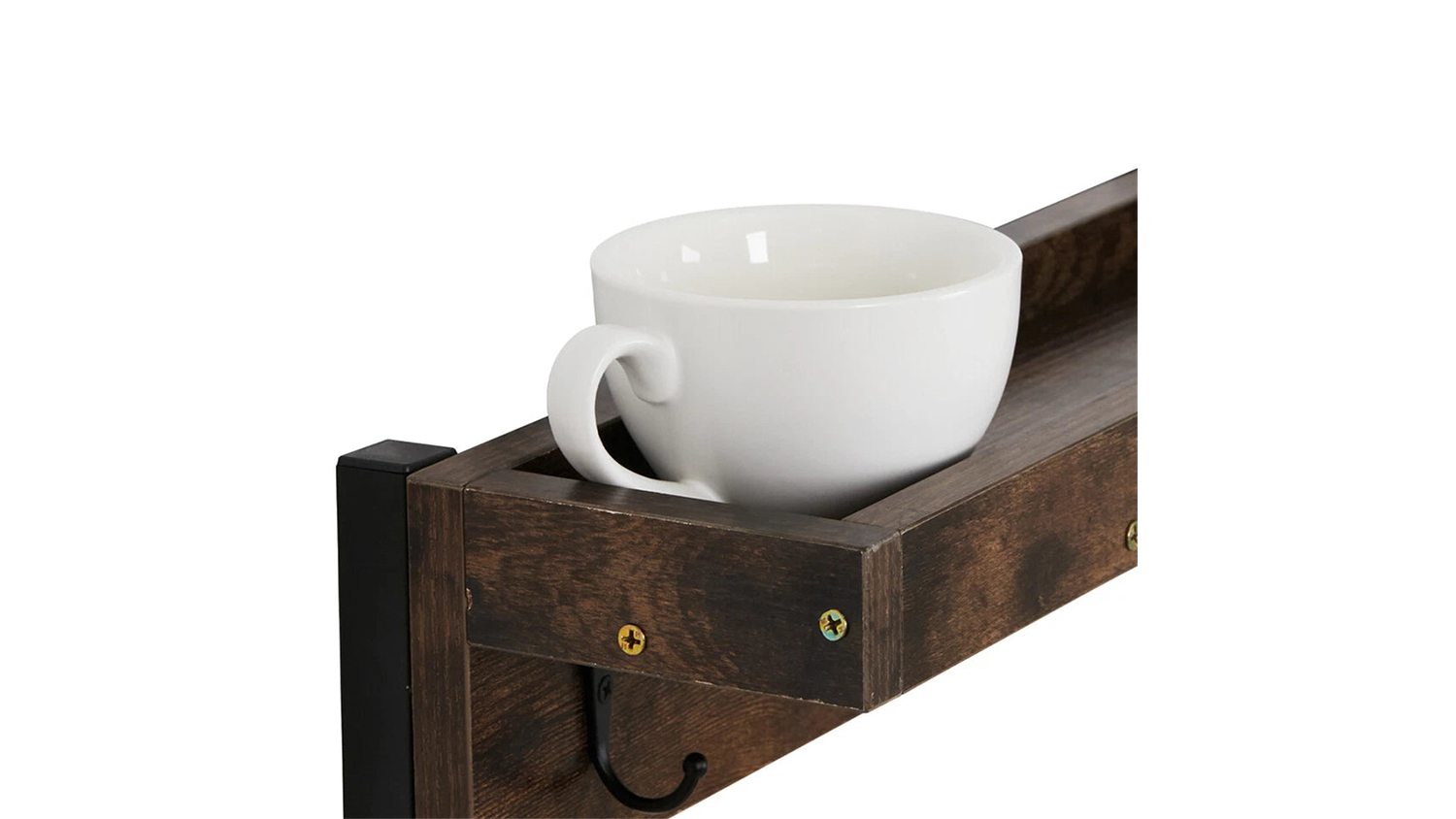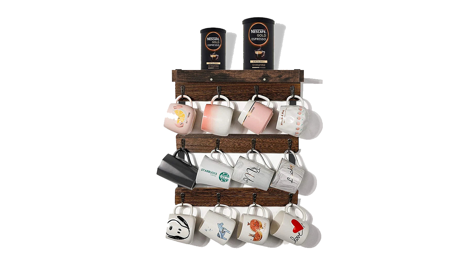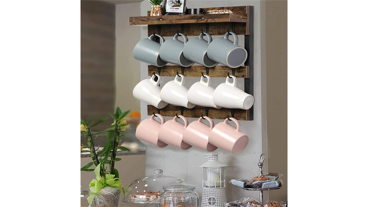 Keep your items beautifully organised with the help of the Pretty & Practical Rustic Wall-Mountable Mug Hooks. These 12 hooks hold all your mugs, while the top layer can display small décor or essentials. It is also constructed from MDF and iron materials, combining superb strength with a timeless rustic style.