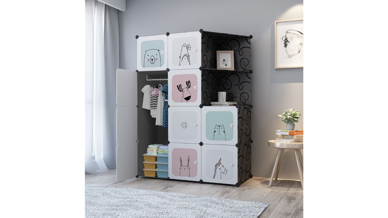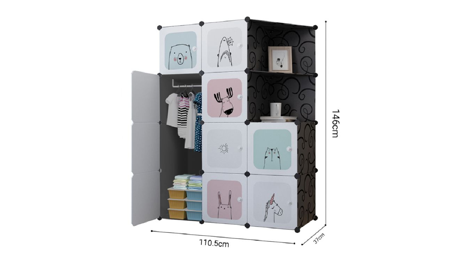 SOGA Modular Children's Storage Cubes 110 x 37 x 165cm - Minimalist Animal Print