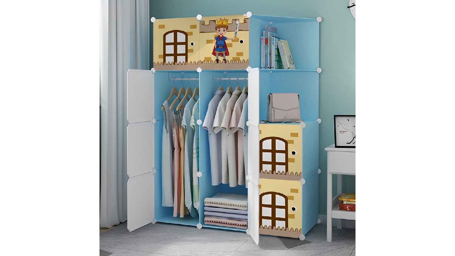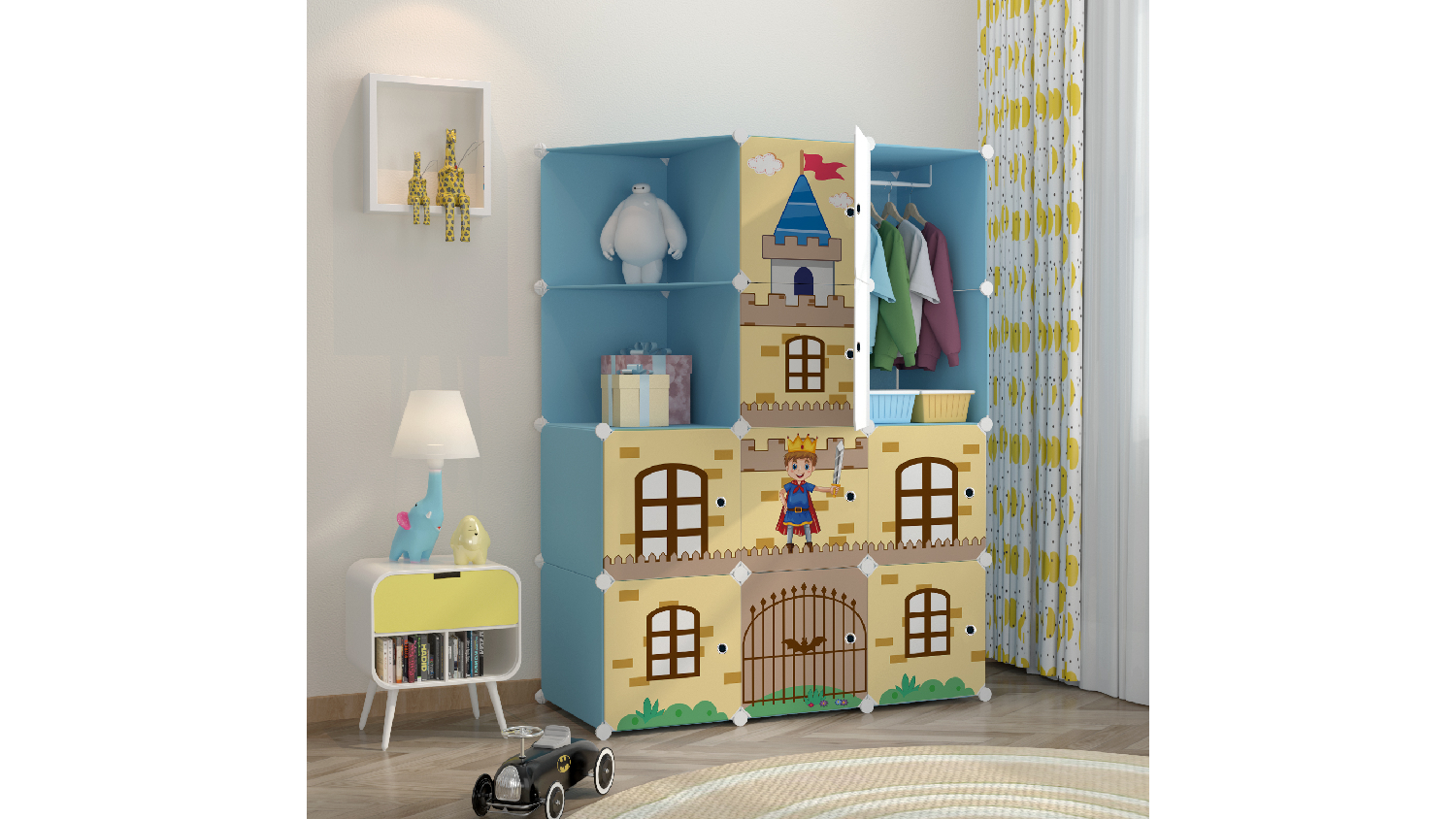 SOGA Modular Children's Storage Cubes 110 x 37 x 165cm - Blue Castle Print