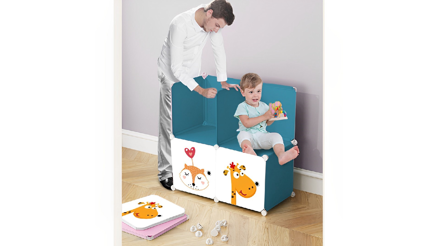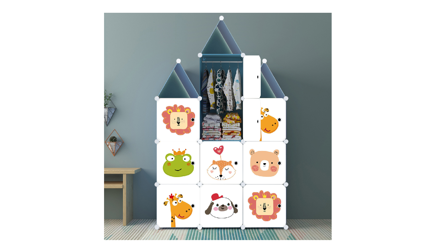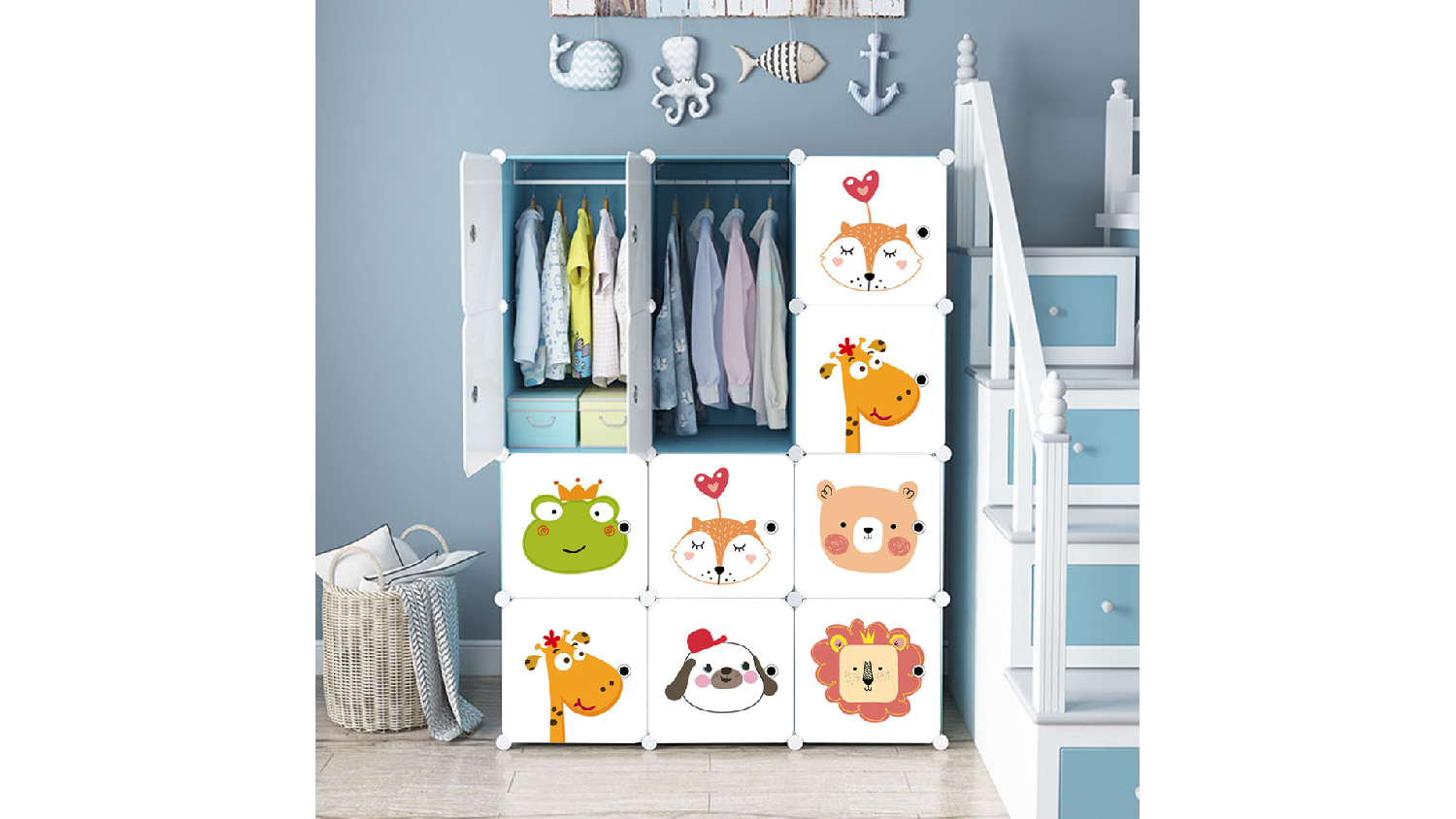 SOGA Modular Children's Storage Cubes 110 x 37 x 165cm - Animal Print