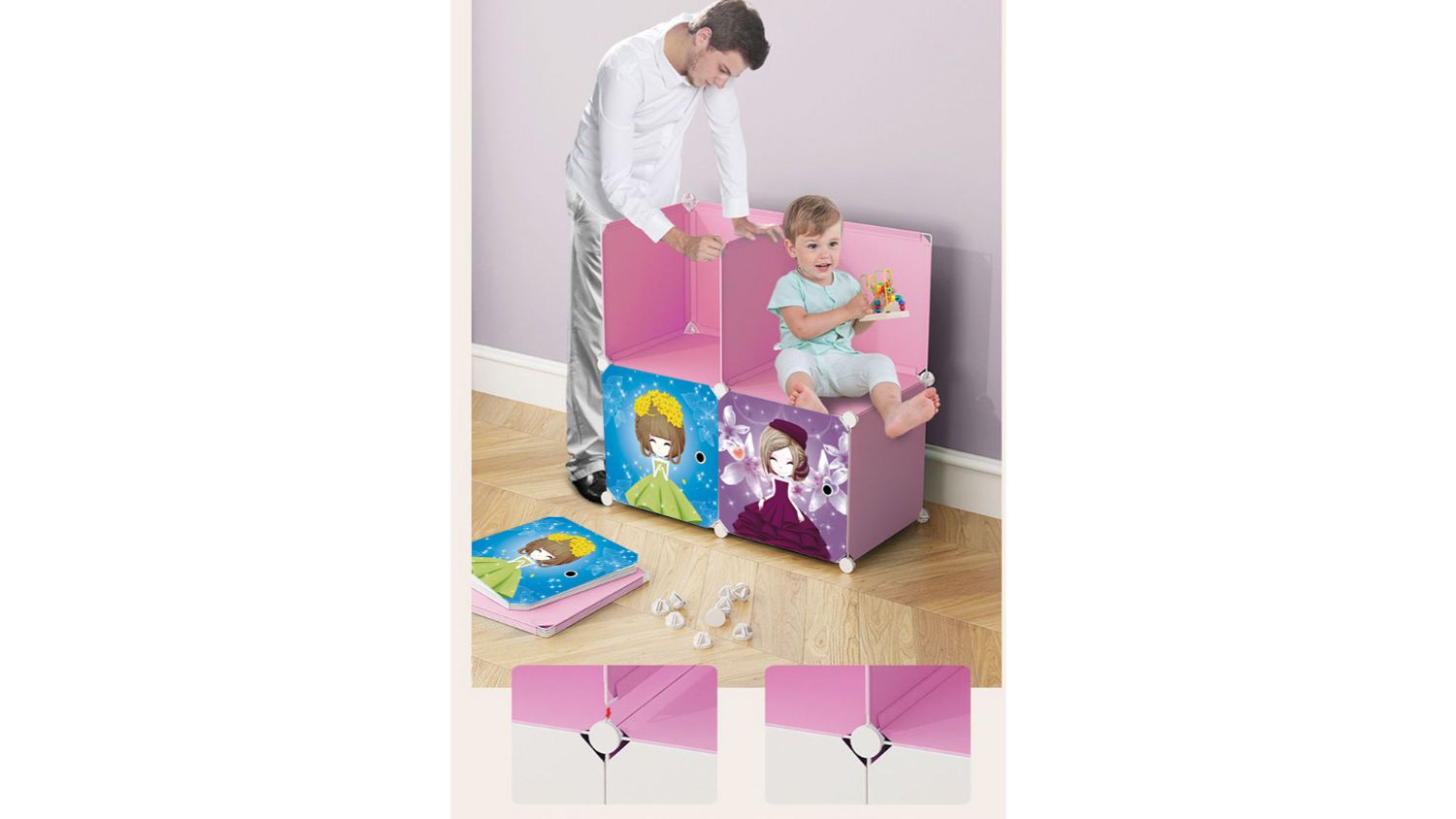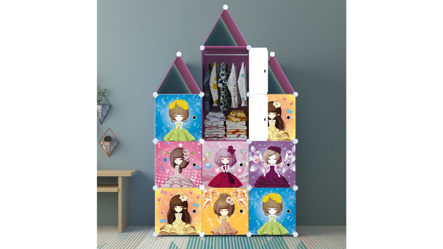 SOGA Modular Children's Storage Cubes 110 x 37 x 165cm - Princess Print