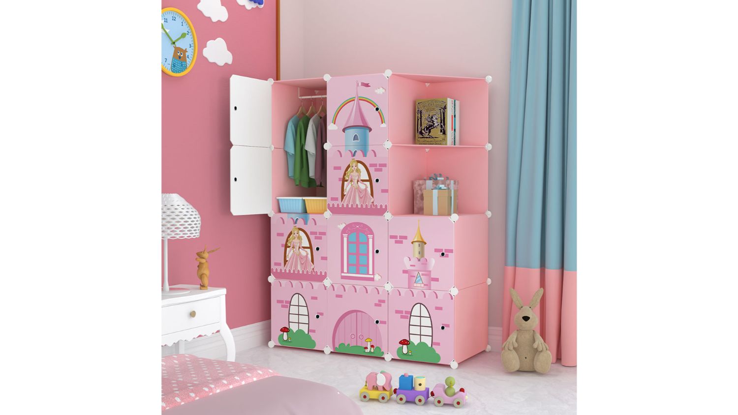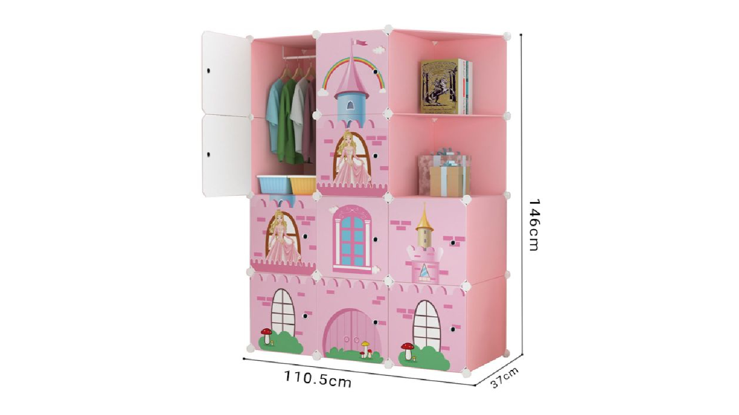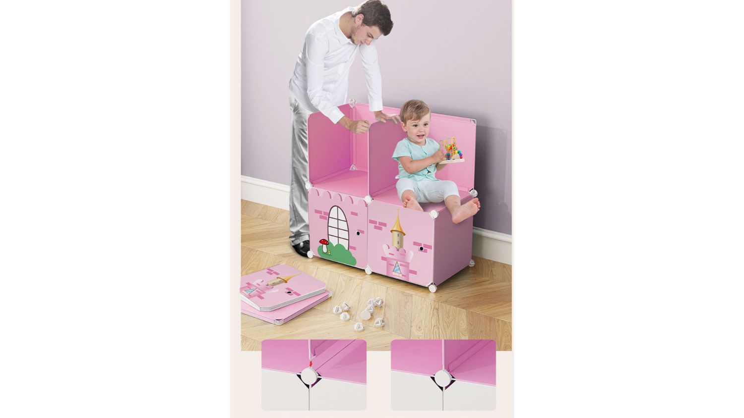 SOGA Modular Children's Storage Cubes 110 x 37 x 146cm - Pink Castle Print