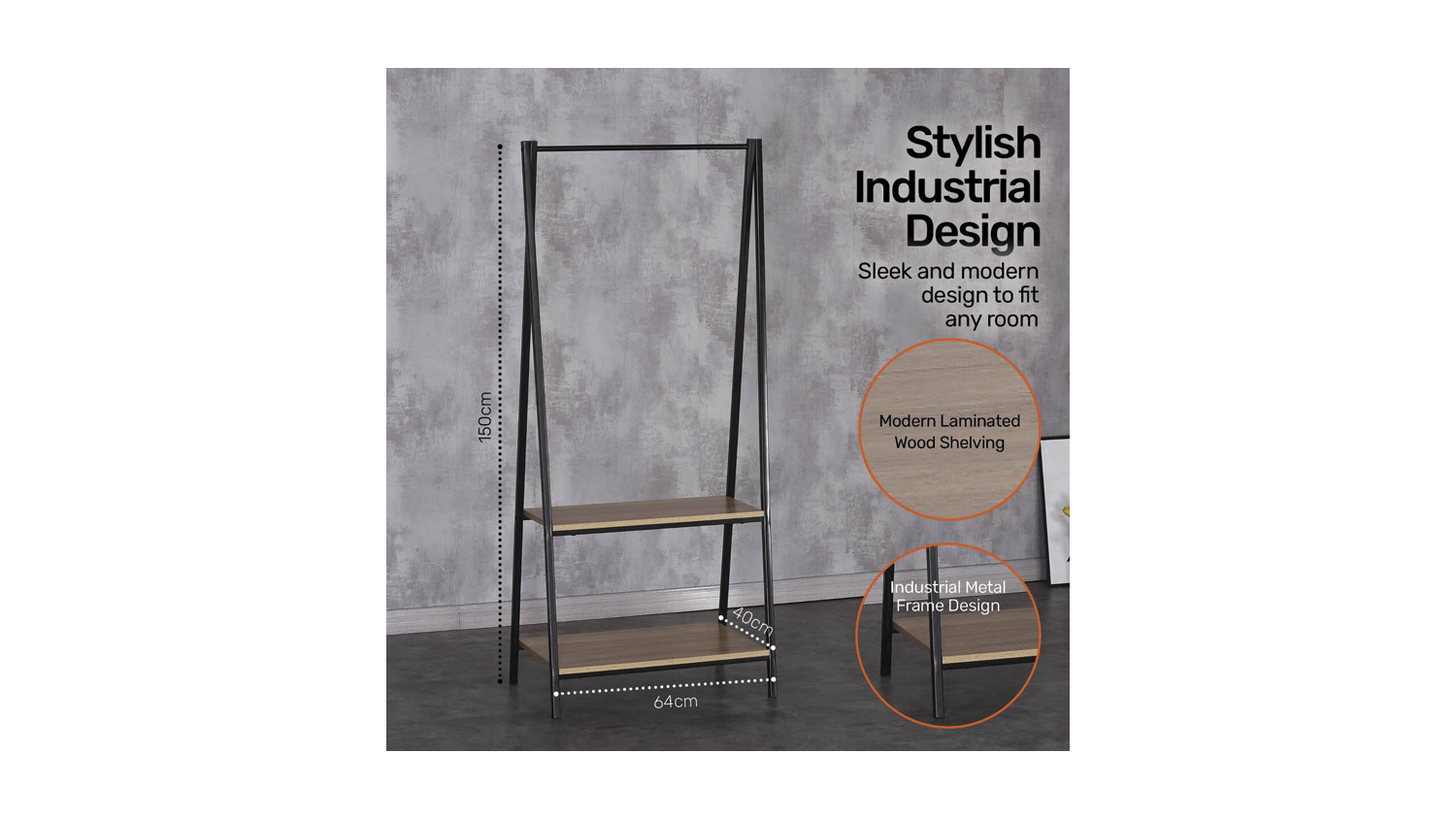 2 Tier Garment/Shelving Rack 64 X 40 X 150cm