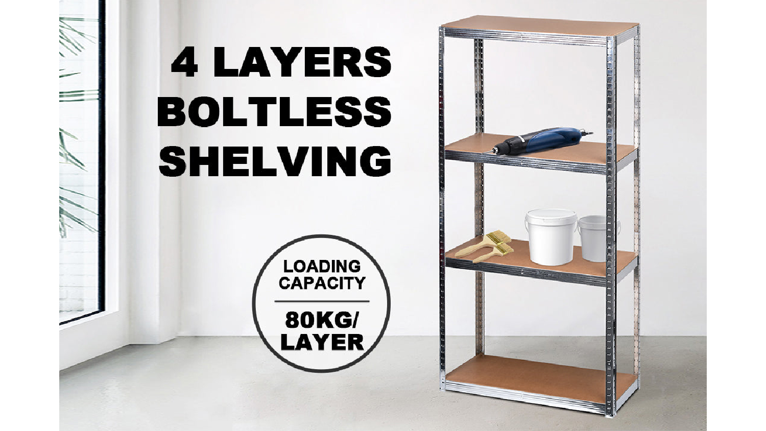 Tired of flimsy shelves? Upgrade to the TSB Living 4 Tier Boltless Shelf - a fusion of contemporary aesthetics and unwavering strength. Its industrial charm is complemented by a sturdy steel frame with a galvanised finish, supporting a remarkable 80 KG per layer. Say goodbye to clutter and hello to a stylish organisation.