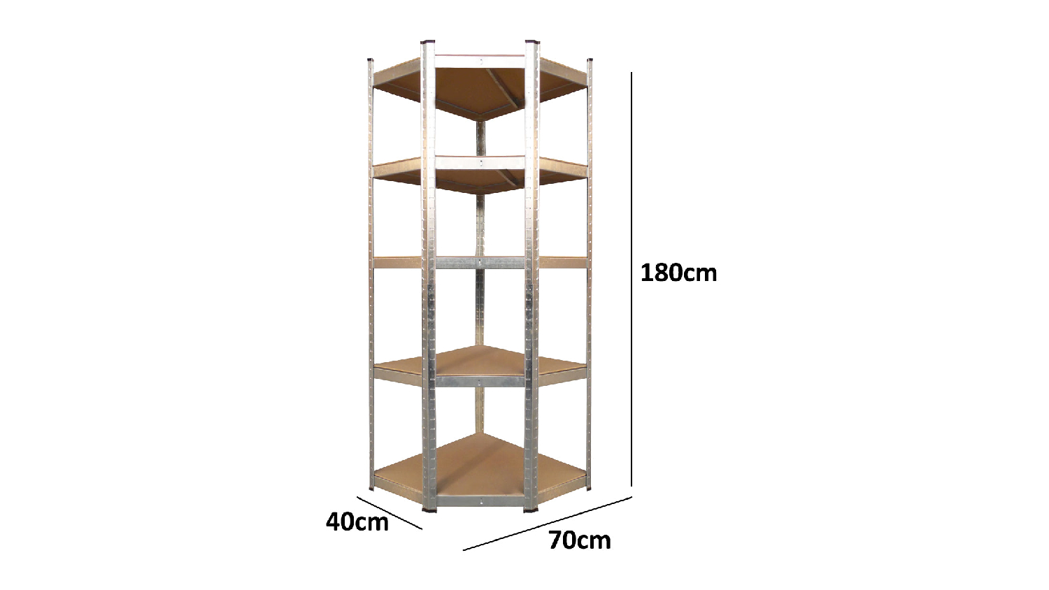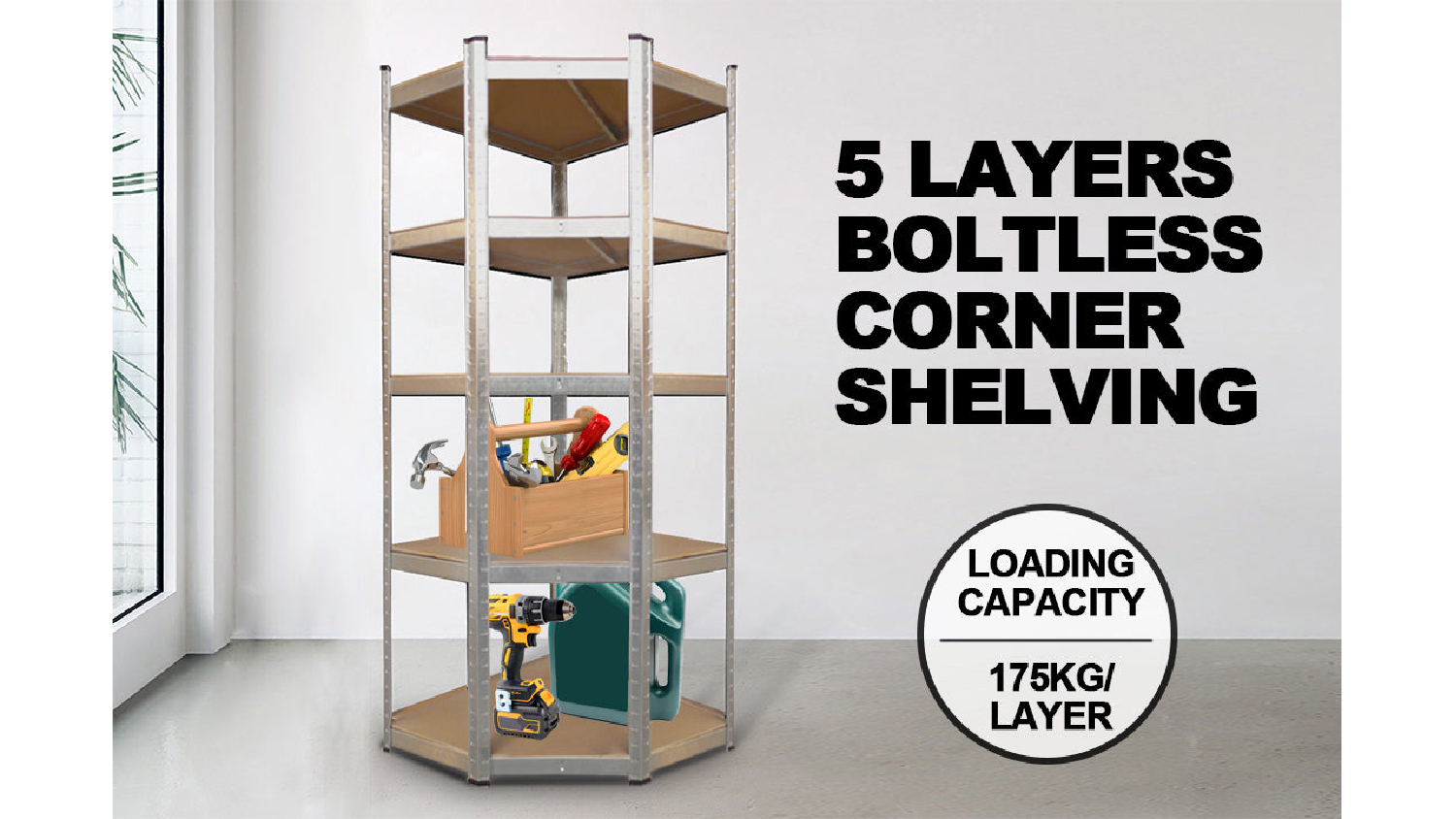 Maximise your space with the stylish TSB Living 5-Tier Boltless Corner Shelf, a fusion of strength and innovation. With a remarkable 175 KG loading capacity per layer, this shelving unit is constructed from 0.7mm steel with a galvanised finish for unwavering durability. Its space-efficient corner design adds a dash of industrial flair to your space.