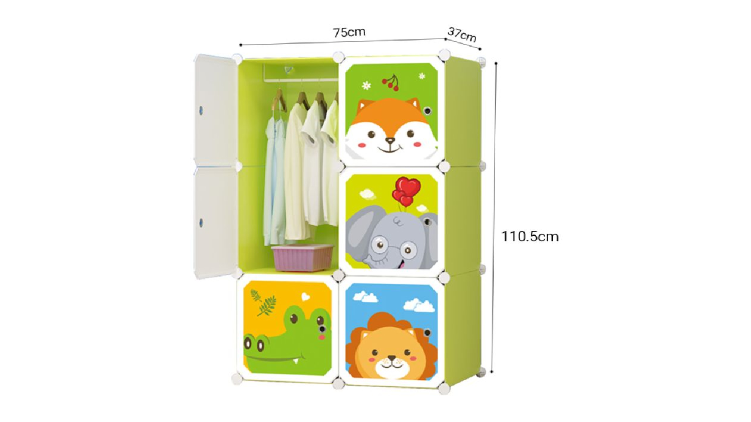 SOGA Modular Children's Storage Cubes 75 x 37 x 110cm - Cute Animal Print