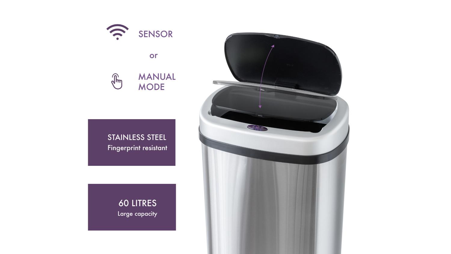 Elevate your waste disposal experience with the Dual Compartment Smart Sensor Rubbish Bin with Deodorant Compartment 60L. This unit is the epitome of smart technology and effortless convenience. It promotes eco-friendly waste segregation with dual compartments and enhanced hygiene with auto-sensor technology.