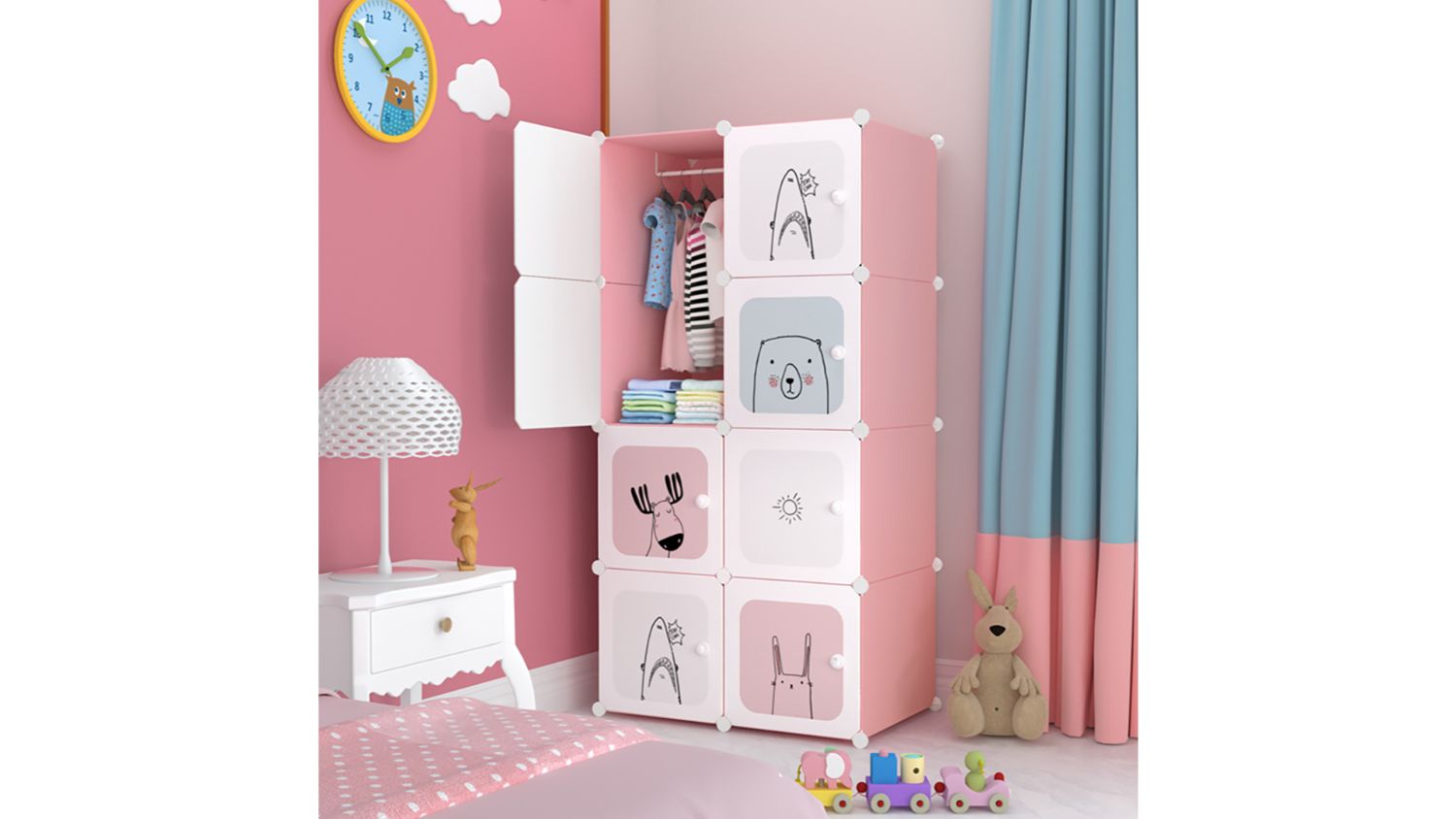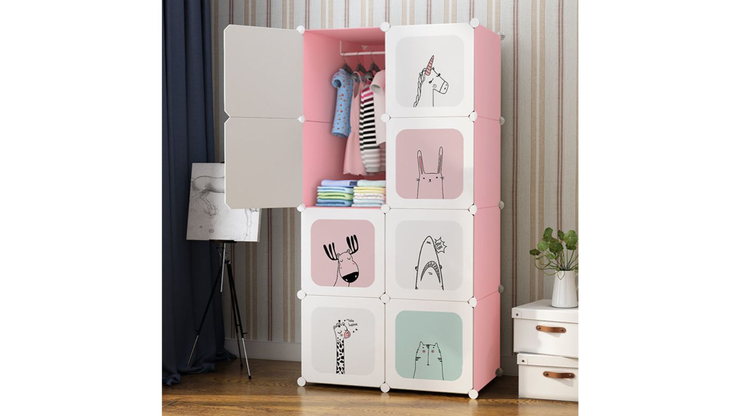 SOGA Modular Children's Storage Cubes 75 x 37 x 146cm - Pink Castle Print