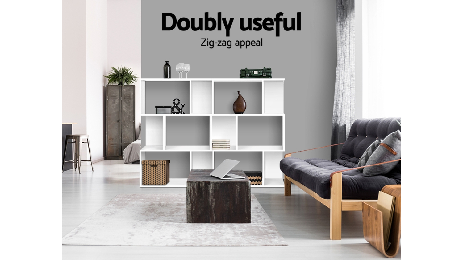 Revolutionise your home decor with the Artiss 3-Tier Modern Zig Zag Shelf. This eye-catching and contemporary shelf design adds a stylish twist to any room, offering a unique way to display your collectables and decor. Elevate your interior with this sleek and functional statement piece.