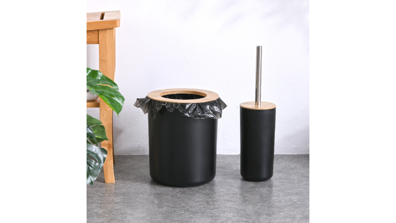 TAKARA "Takae" Bathroom Bin & Brush Set - Black