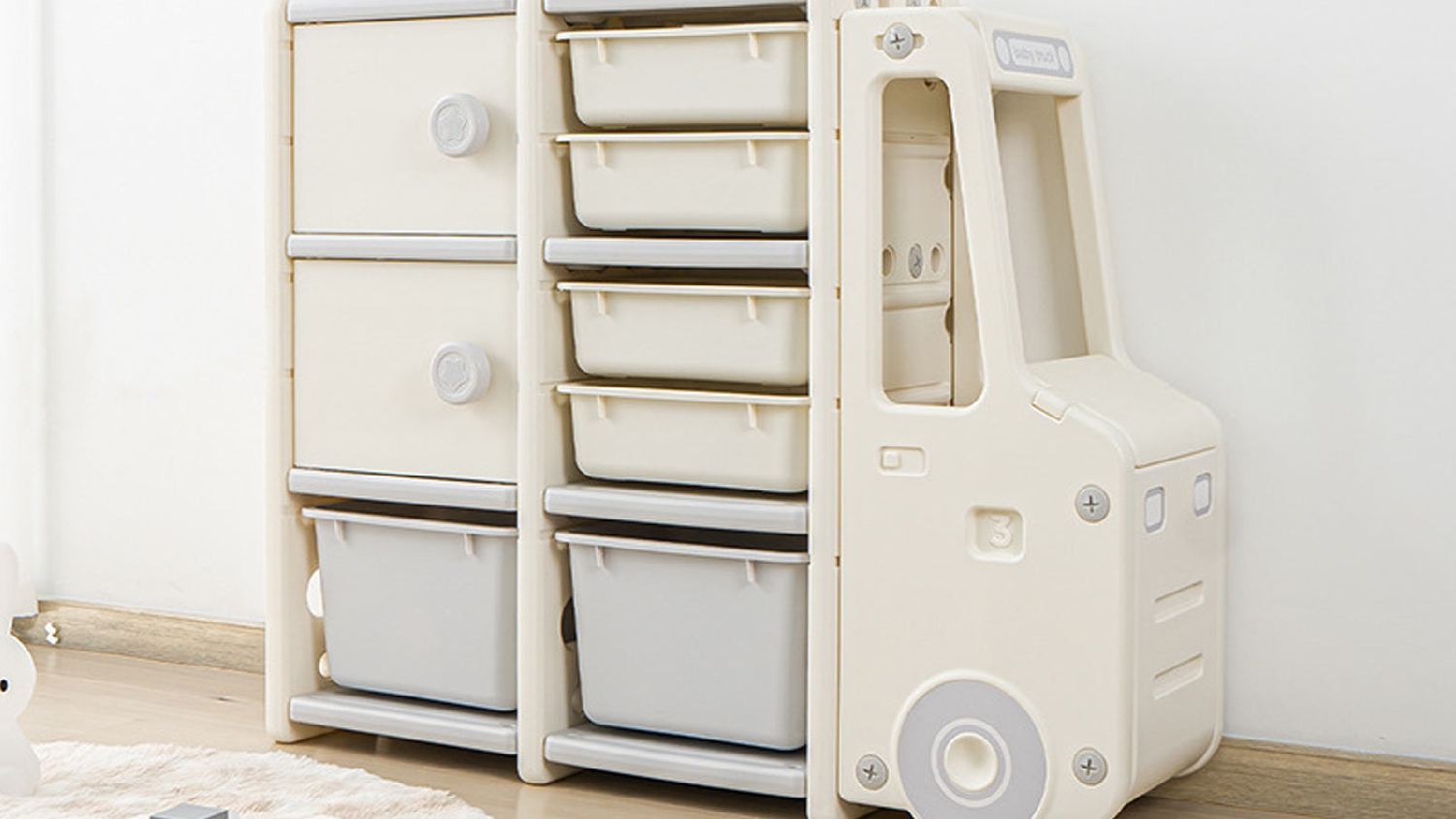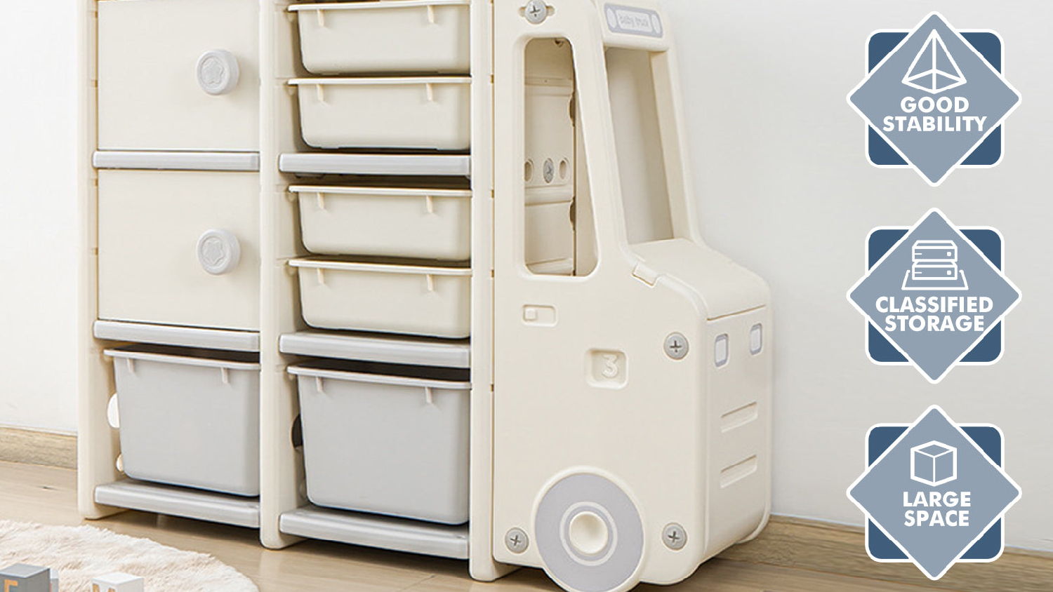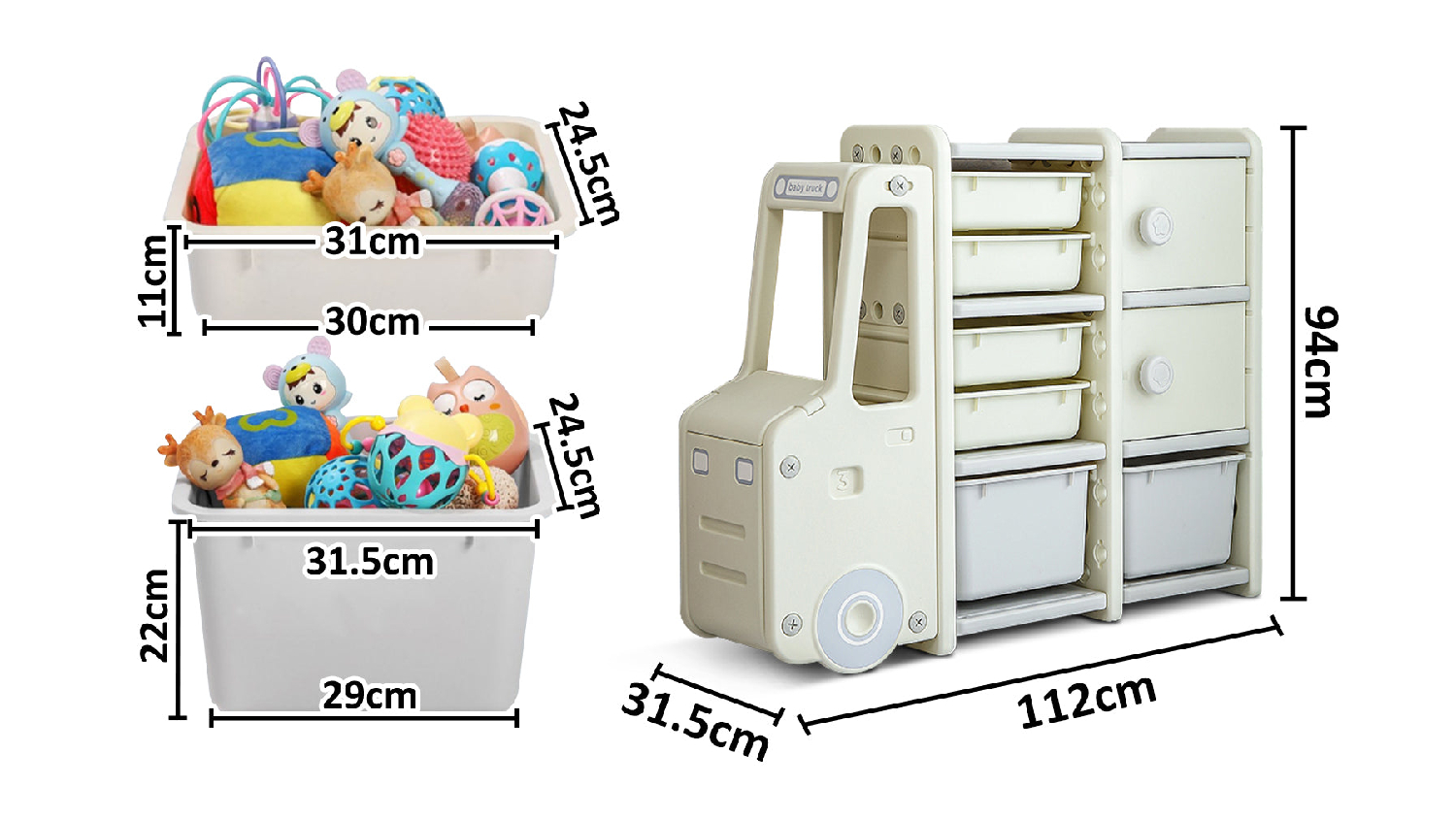 Keep your kid’s room organised with the TSB Living Children's Car-Shaped Storage Shelf Set. With its three tiers, six removable bins, and three cabinets, it is the perfect way to store and display your child's toys, books, games, and other belongings.