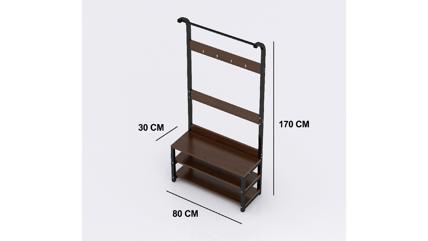 Discover the perfect balance of practicality and elegance with the TSB Living Metal Frame Coatrack with Storage Shelves and hooks. This versatile storage unit features a sleek metal frame and MDF shelves with a melamine surface, adding a touch of sophistication to your entryway, living room, or bedroom while keeping your belongings organised and easily accessible.