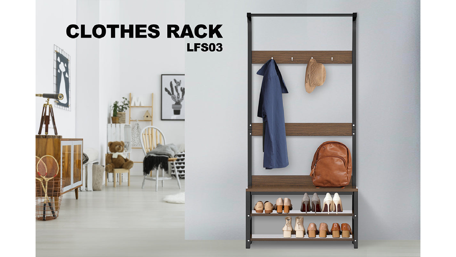 TSB Living Metal Frame Coatrack with Storage Shelves, Hooks