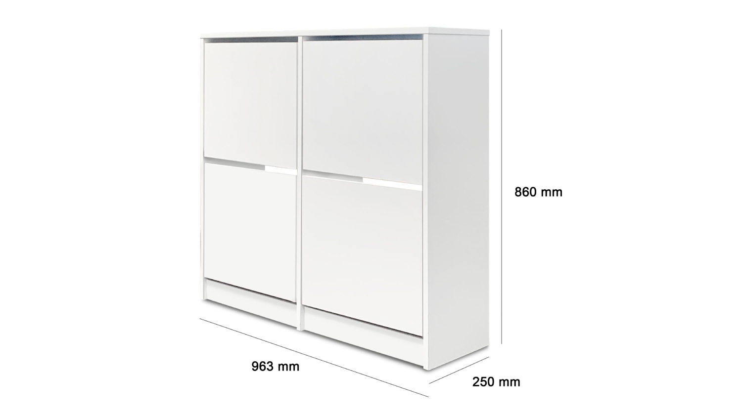 Offering exceptional storage capacity and versatility, The TSB Living Enkel Shoe Cabinet will transform your home into a haven of order and style! Its durable particle board with melamine construction ensures long-lasting performance, while its spacious interior, with four large storage cupboards, accommodates up to 16 pairs of shoes. Now you can keep your footwear neatly organised and out of sight.