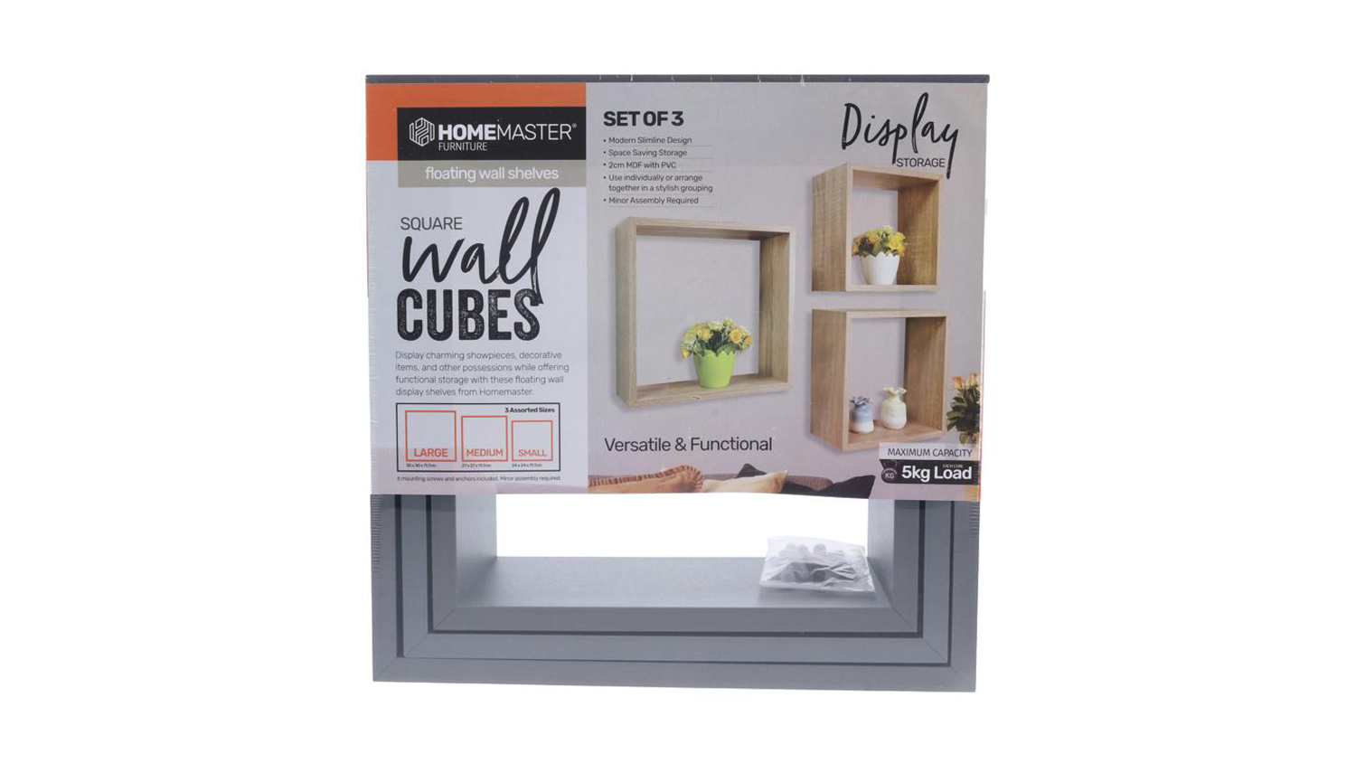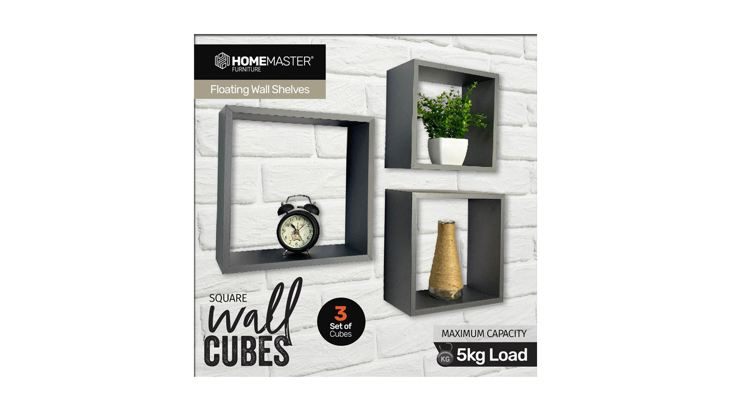 *3 Piece Floating Cube Shelves Grey Small only. Other size variations are sold separately.