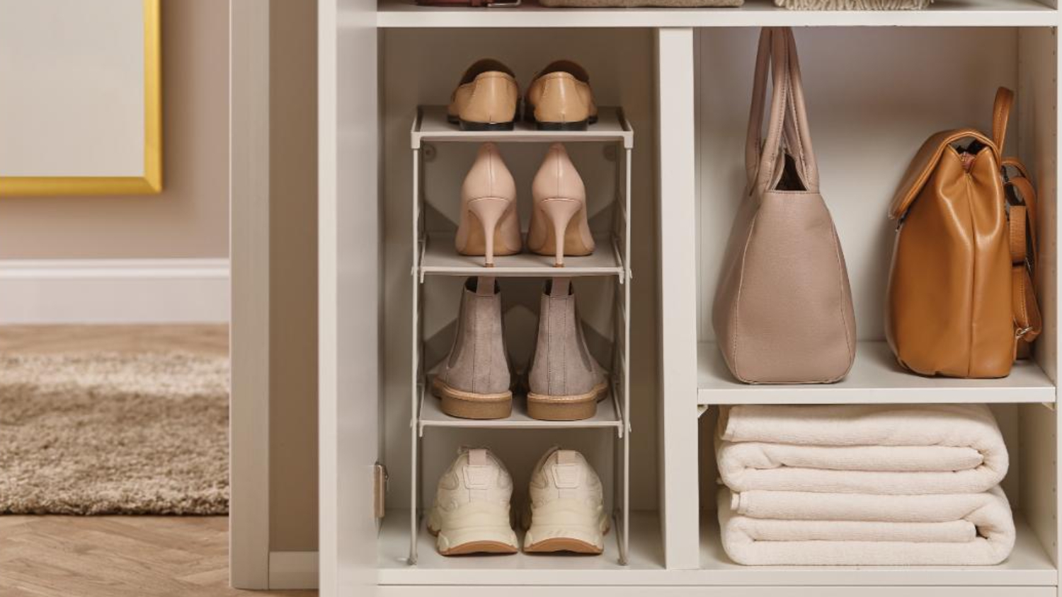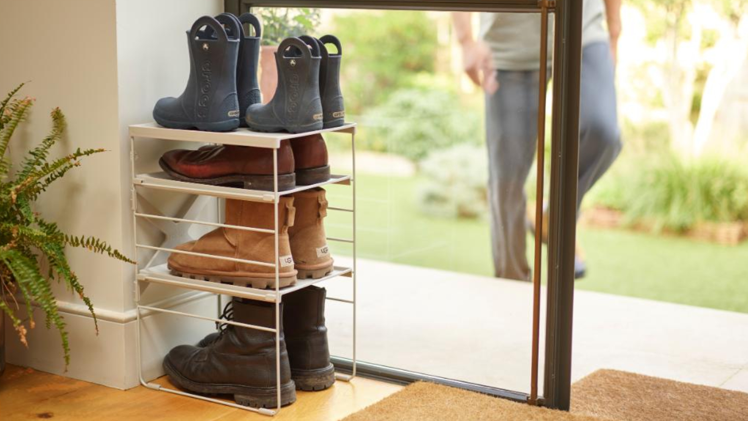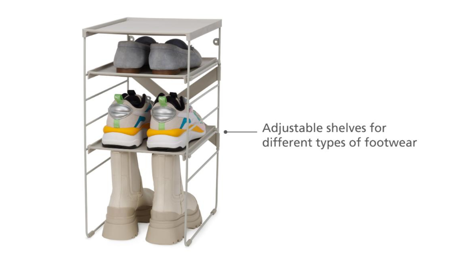 Keep your footwear organised with the Joseph Joseph Level PLUS Adjustable Shoe Rack 26 x 35 x 51cm. With adjustable shelves that accommodate different shoe sizes, this sturdy rack stores up to 4 pairs of shoes or boots. Easy to assemble, it features a tough, powder-coated steel frame and durable shelves. It is also stackable for extra storage and can be screwed to the wall for added stability.