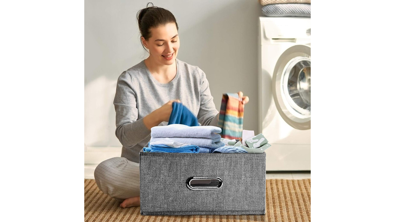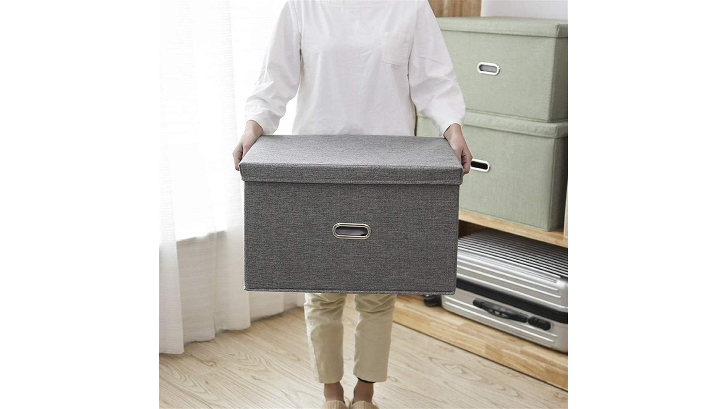 Kmall Collapsible Linen Storage Basket with Lid 44 x 29 x 30cm