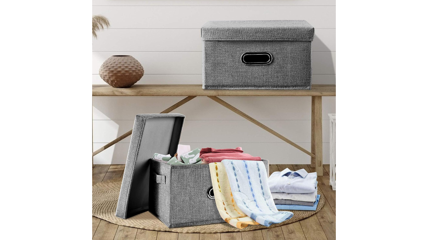 Meet your new favourite storage solution—the Kmall Collapsible Linen Storage Basket! Designed for everyday convenience, it features a lid to protect your belongings from dust and sturdy handles for easy carrying. Perfect for clothes, toys, magazines, and more, this basket fits beautifully in bedrooms, living rooms, and playrooms. Its retro-chic design adds a touch of style while keeping your home clutter-free.