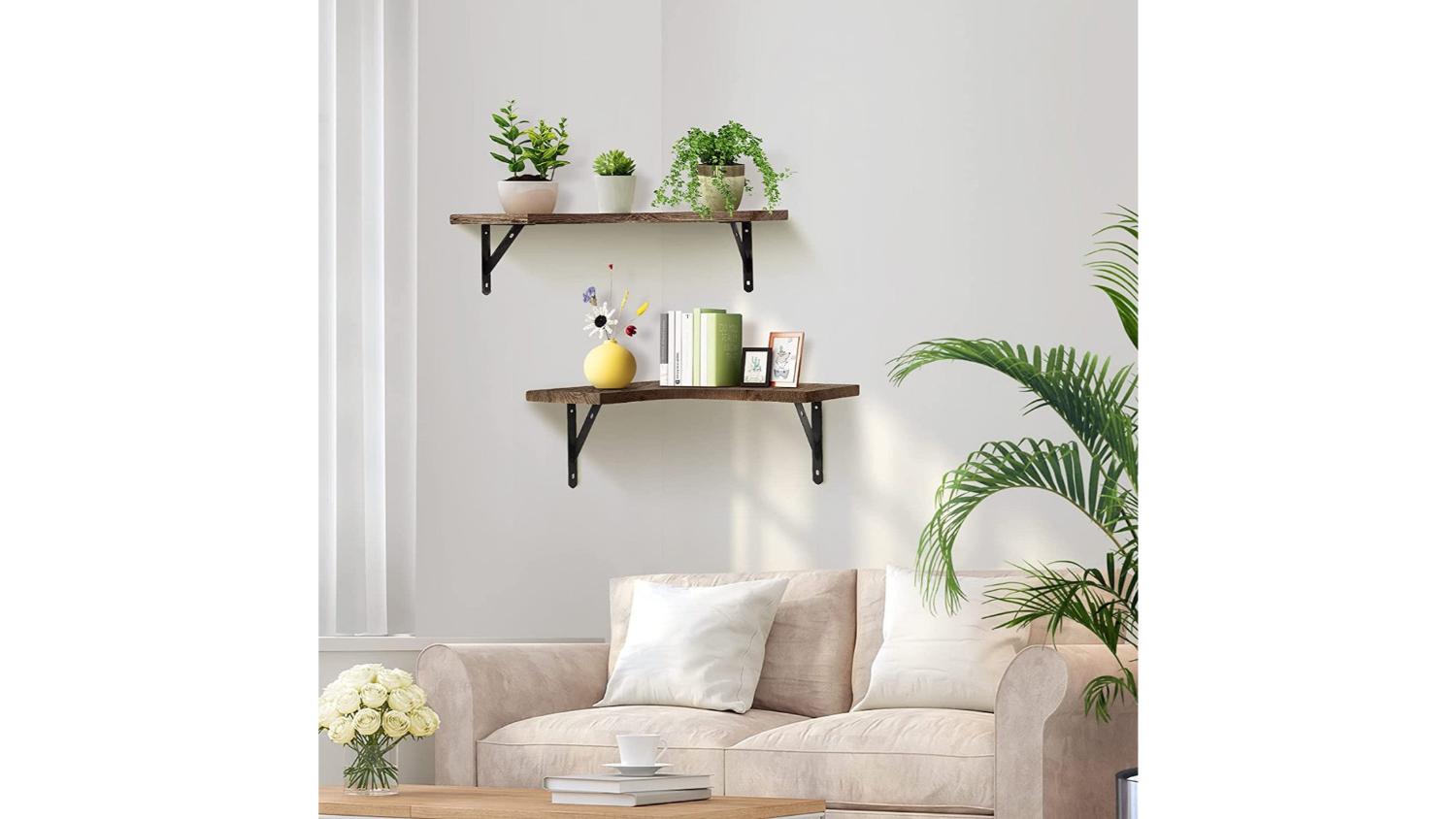Maximise your storage space and elevate your home decor with the Kmall Floating Corner Shelf 3pcs! These versatile shelves can be used in any room of the house, from the kitchen to the living room. Made from lightweight yet sturdy paulownia wood, finished with a beautiful dark stain, and each shelf boasts a weight capacity of 15kg. The easy-to-install design allows you to arrange the shelves in a variety of configurations, making them perfect for any space.