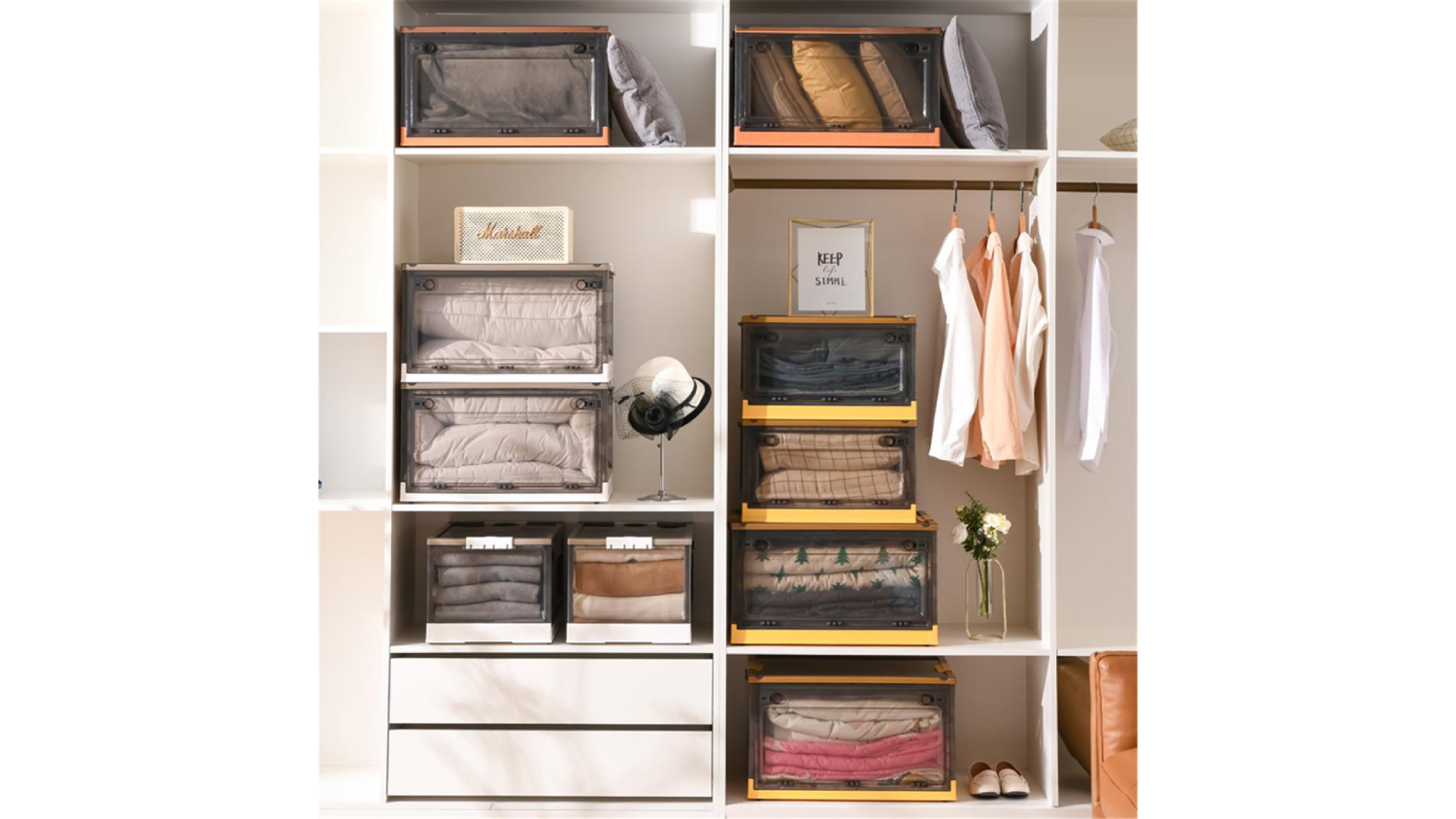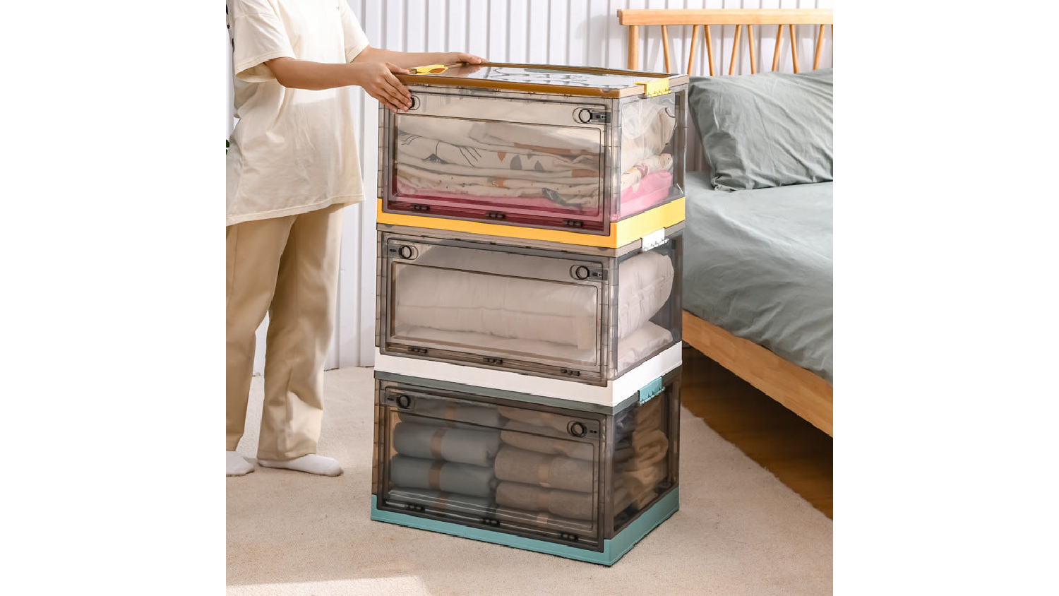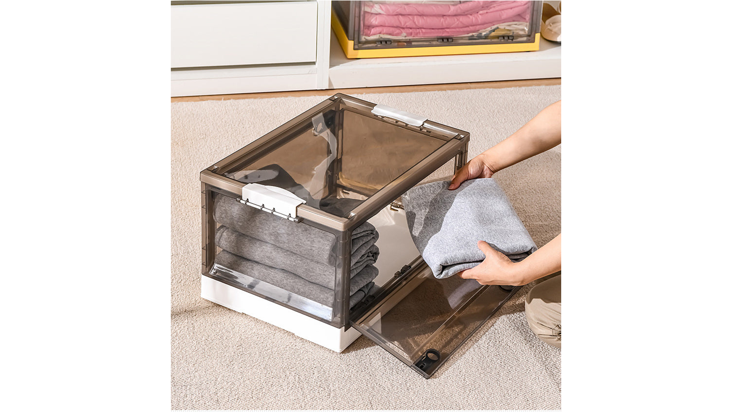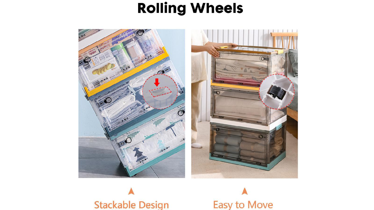 The Kmall Folding Rolling Closet Organiser Box with Lid and Castors is here to slay house clutter and bring peace to your storage space! Made from durable ABS material, this box can hold up to 50 kg of load. Its transparent design lets you easily find your books, trousers, coats and toys. It also has double-sided buckles to keep insects out, convenient side doors for easy access, and pulleys for effortless mobility. And when it's time to tidy up, you can simply fold it down to a compact 10 cm height for easy storage.
