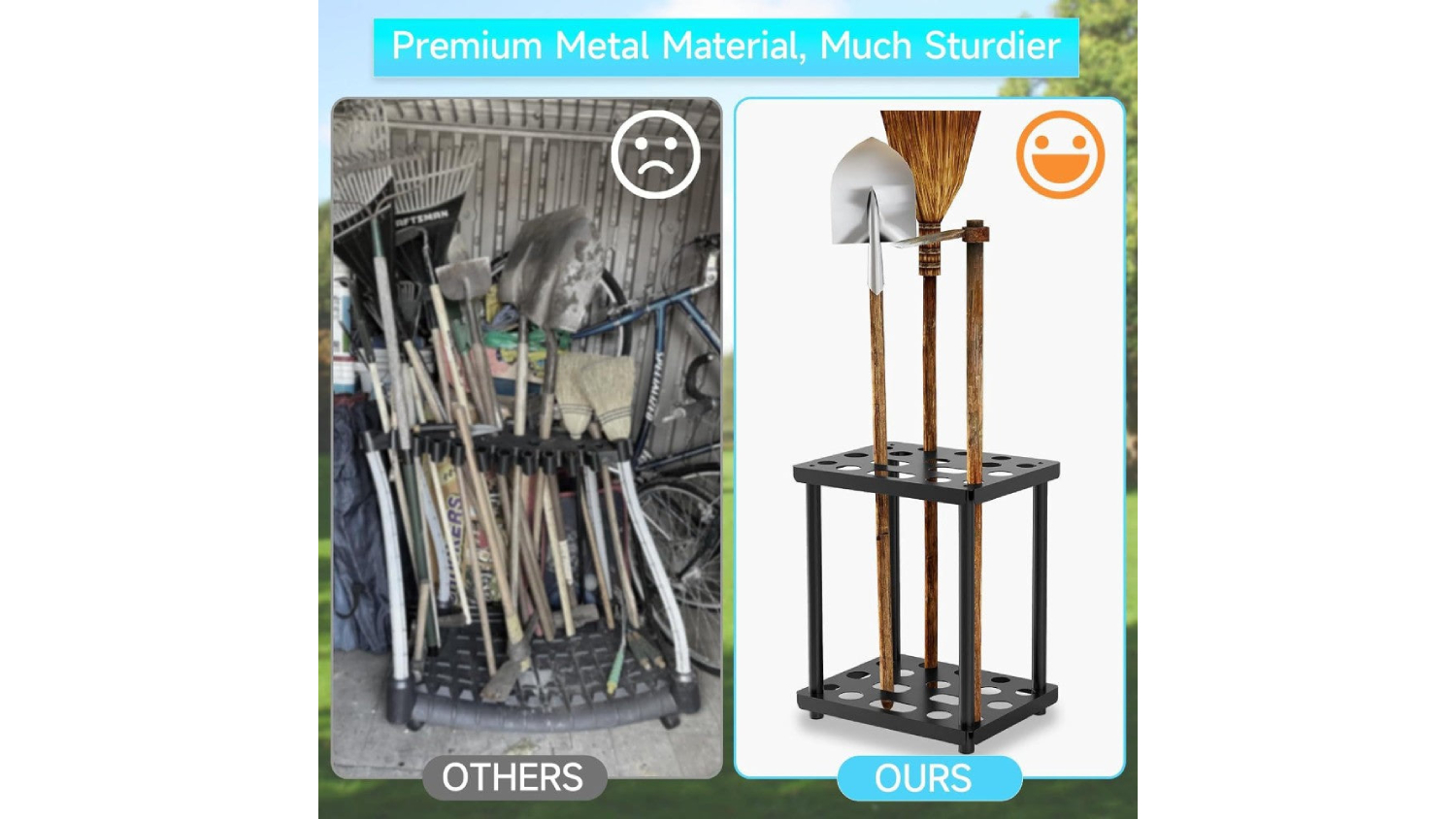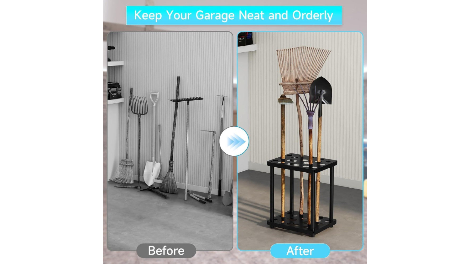 Tired of tools toppling over in your shed? The Kmall Garden Tool Vertical Organiser is your space-saving hero. Built from thickened carbon steel with a sleek black powder coating, it resists rust and stands strong indoors or out. It features slots for up to 17 long-handled tools—rakes, shovels, brooms, and more. Plus, the four anti-slip foot pads lift it off damp floors and prevent scratches.