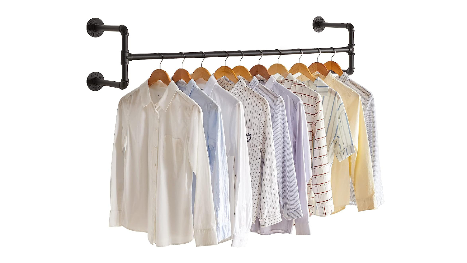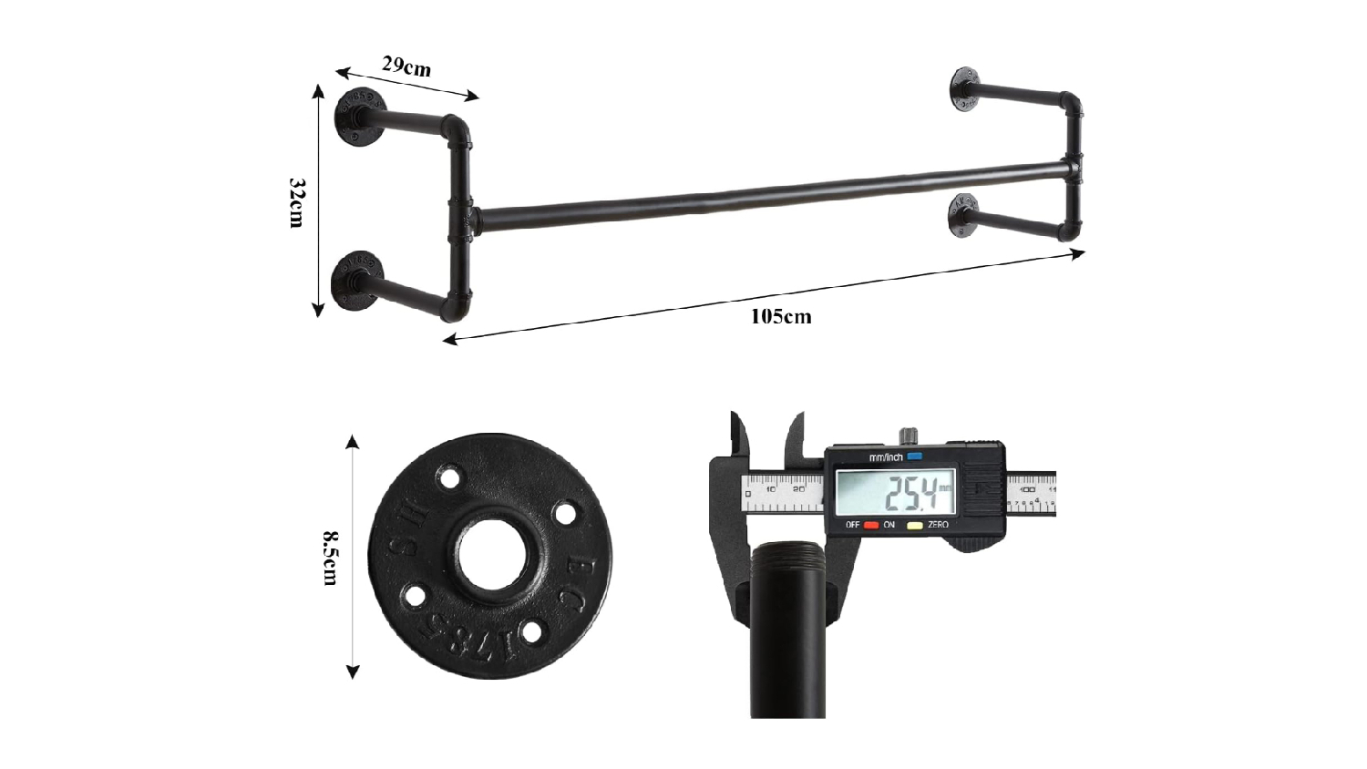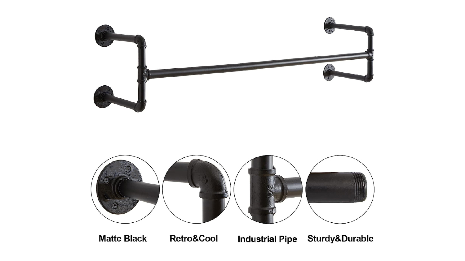 Kmall Industrial Pipe Wall Mountable Garment Rack 105cm - Matte Black