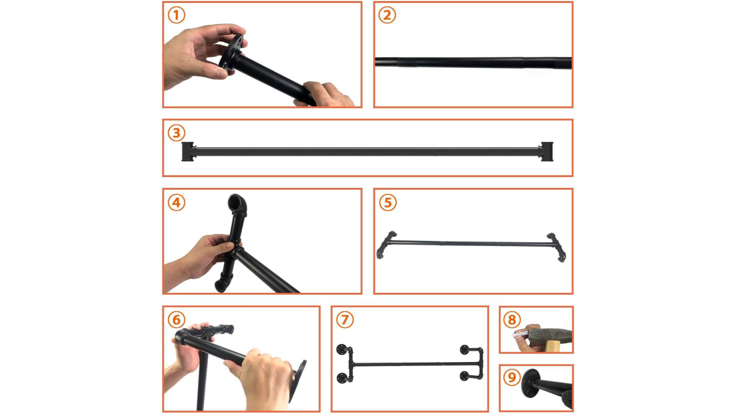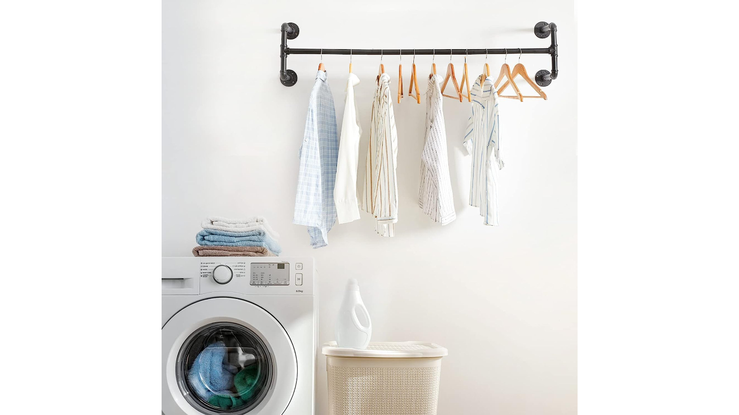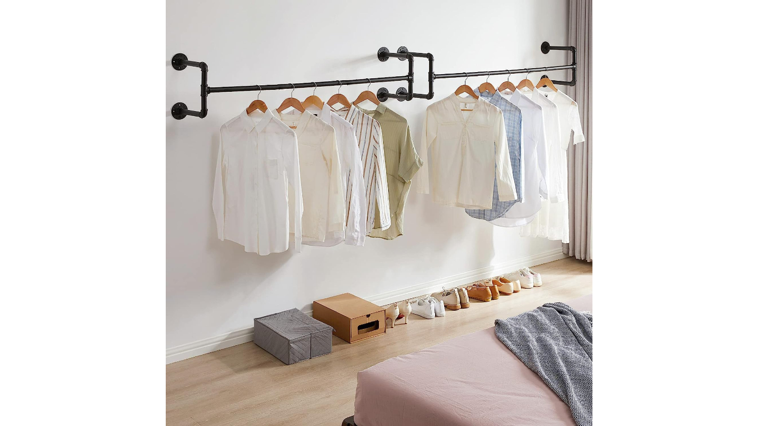 Kmall Industrial Pipe Wall Mountable Garment Rack 105cm - Matte Black