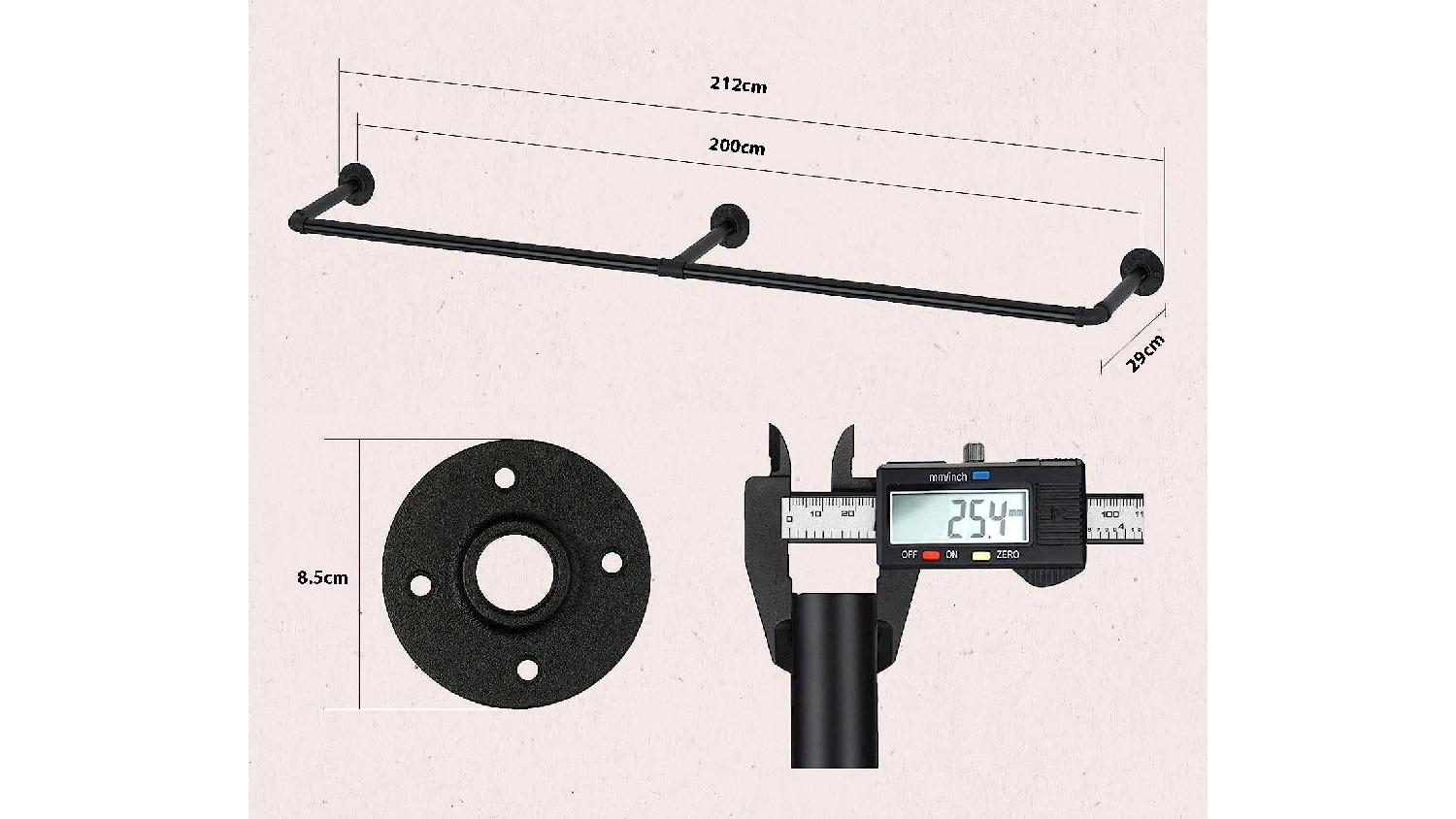 Kmall Industrial Pipe Wall Mountable Garment Rack 200cm - Matte Black