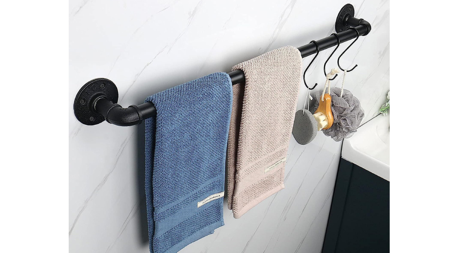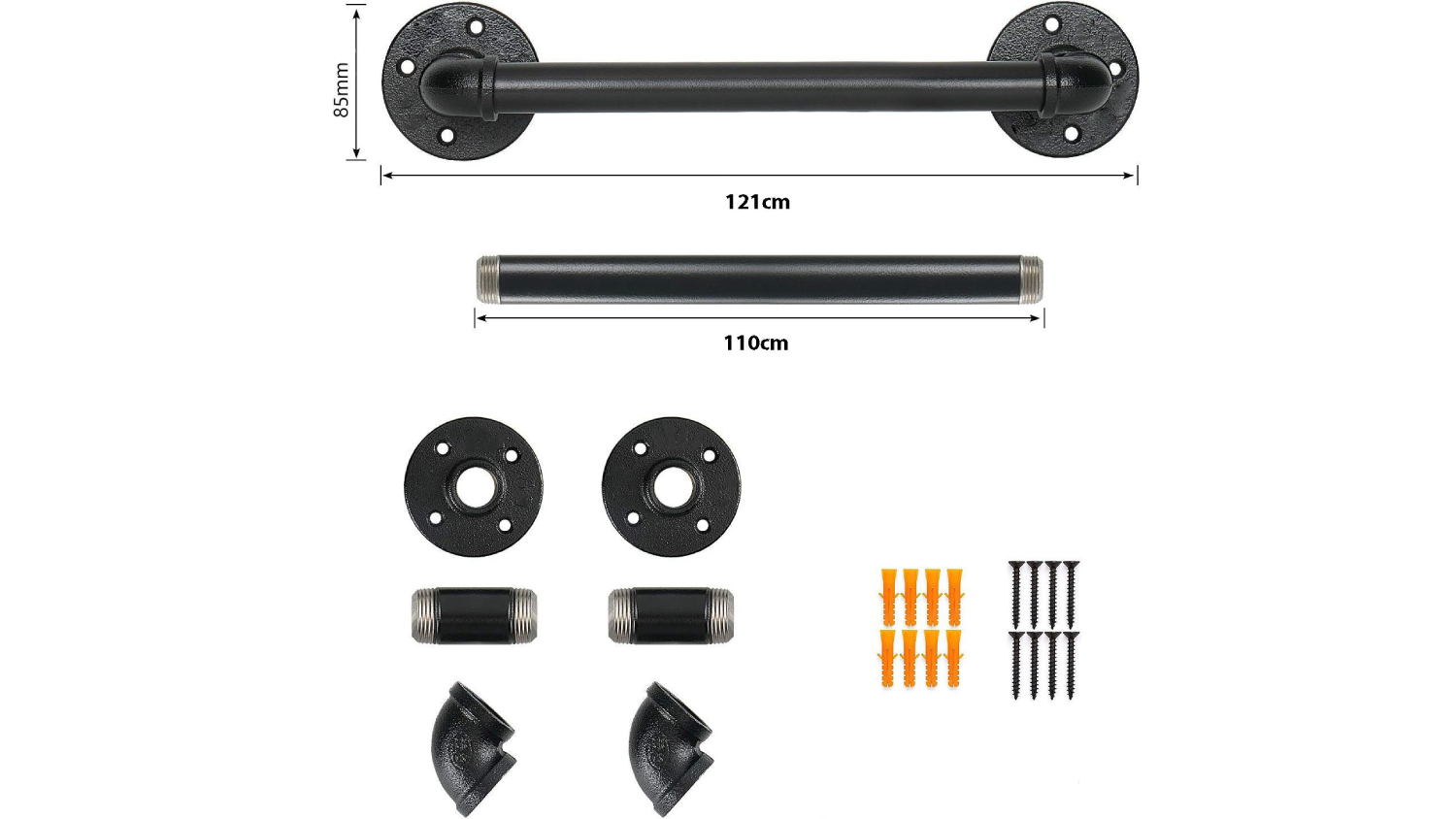 Kmall Industrial Pipe Wall Mountable Towel Rail 110cm - Matte Black