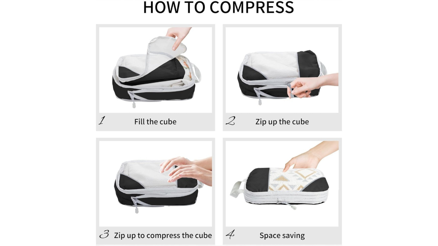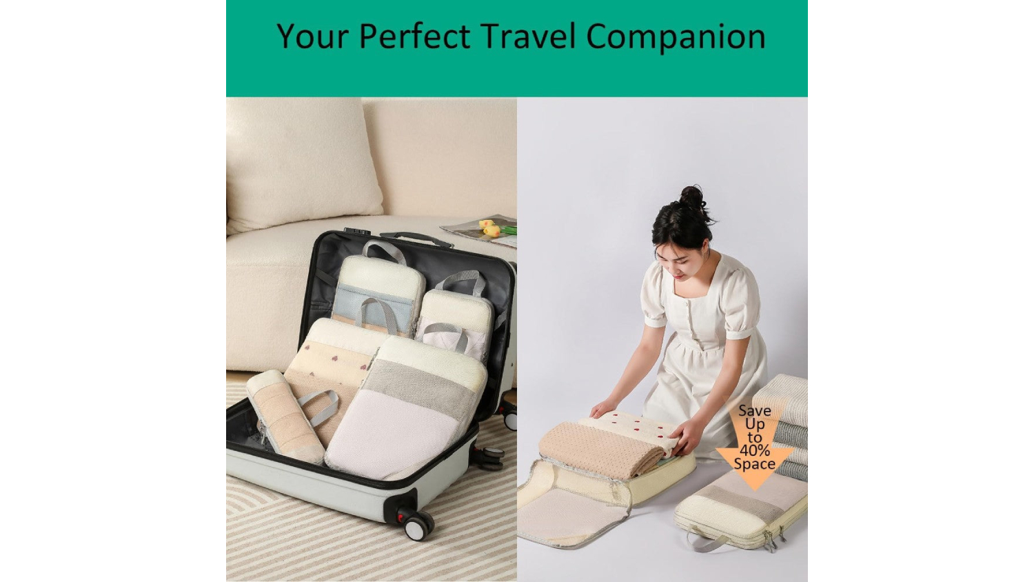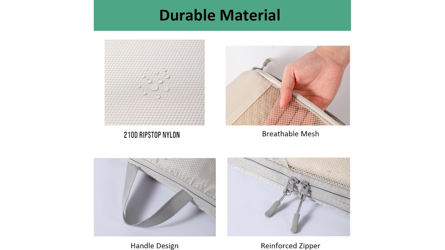 Pack more and stay organised with the Kmall Luggage Organiser Pouch Set. These durable pouches are made from 210D polyester ripstop and mesh fabric. They feature a clever dual-zipper system that flattens contents for extra packing room. It also provides various sizes of bags for all your clothing needs (plus a separate laundry bag).