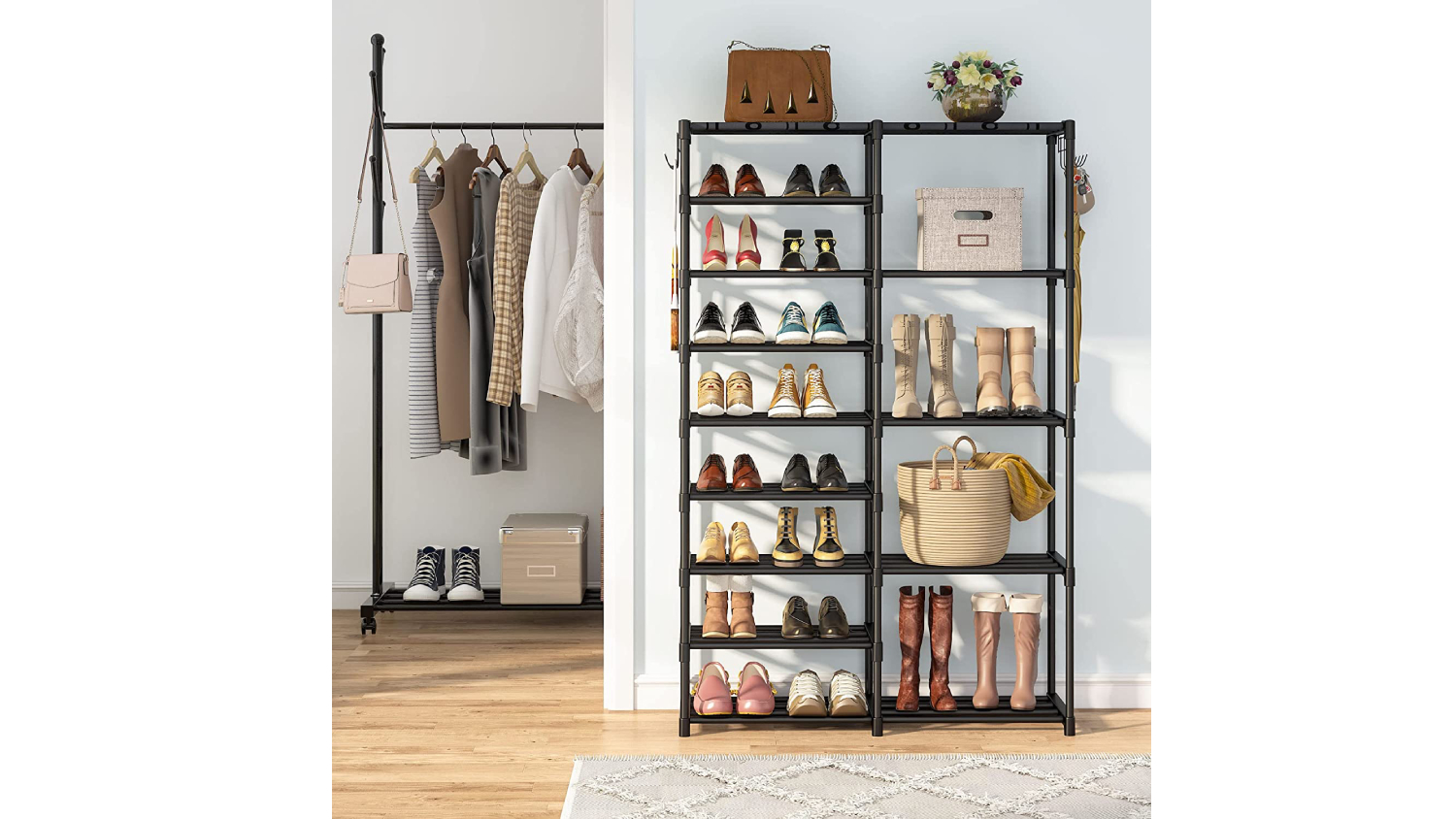 Taming shoe chaos is easy with the Kmall Multi-Tiered Shoe Rack 84.5 x 141.5cm! Crafted from a sturdy metal pipe with a rust-resistant powder-coated finish, this rack boasts long-lasting good looks. This versatile wonder can be used for storing footwear, bags, toys, etc. It’s perfect for your entryway, closet, or anywhere you need extra storage.