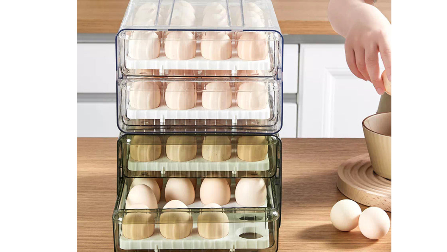 Kmall Plastic 32-Cell Refrigerator Egg Carton - White