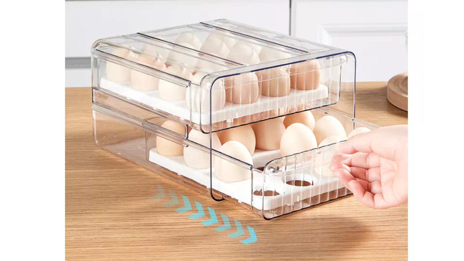 Keep your eggs fresh, organised, and safe with the Kmall Plastic 32-Cell Refrigerator Egg Carton! This handy container features a double-layer design that holds up to 16 eggs each, maximising your fridge space. The built-in lid lets you stack cartons for vertical storage, while the individual egg compartments prevent them from bumping and cracking. Plus, the clear, durable plastic is easy to clean and keeps your eggs dust and moisture-free.