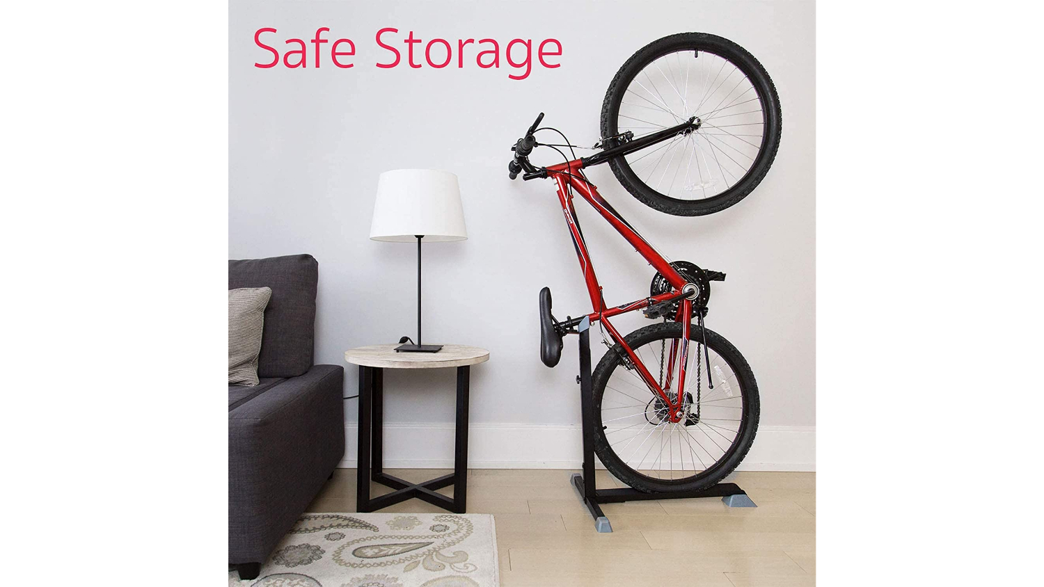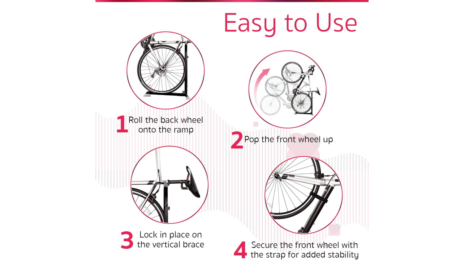 Tidy up your space with the Kmall Space Saving Standing Bike Rack. Designed for quick and secure storage, this vertical stand keeps your bicycle stable while saving space in any area. Just roll, lift, and strap your bike in place for effortless storage anywhere.