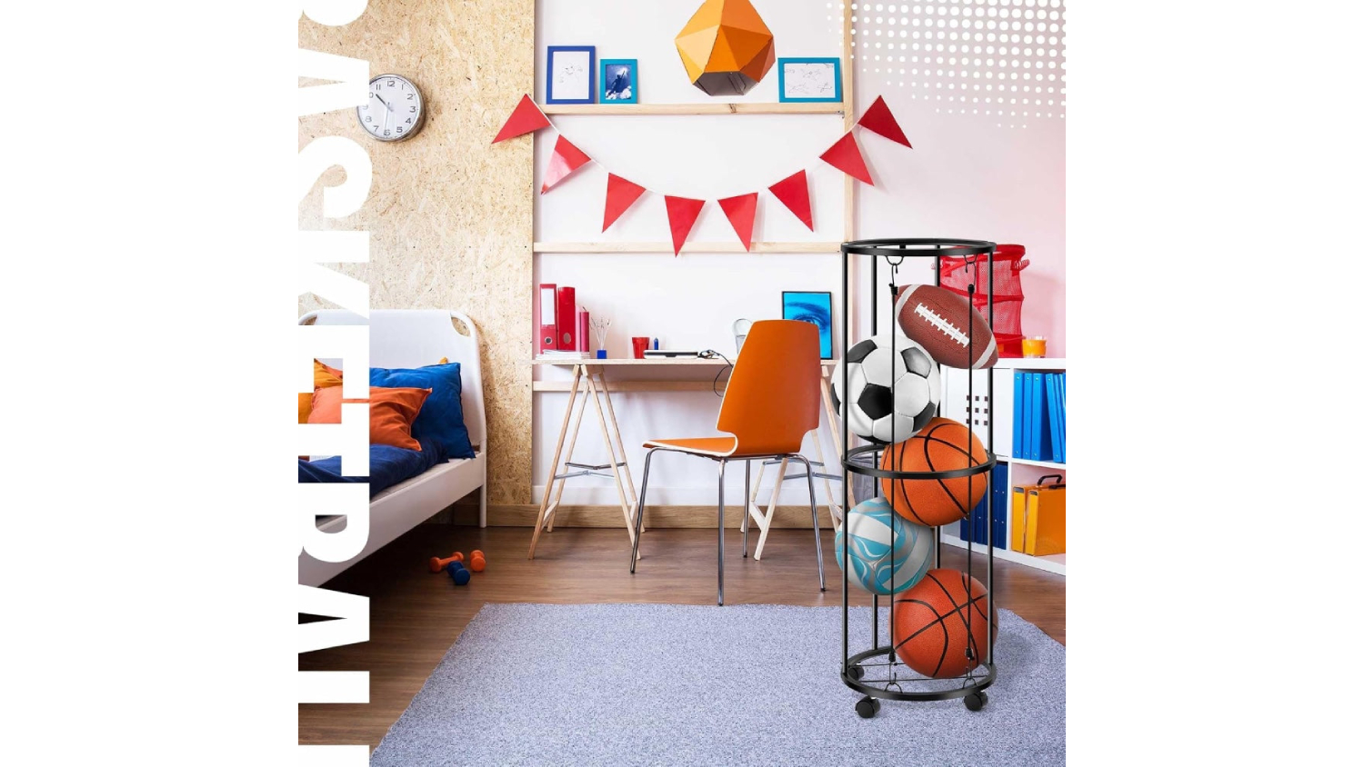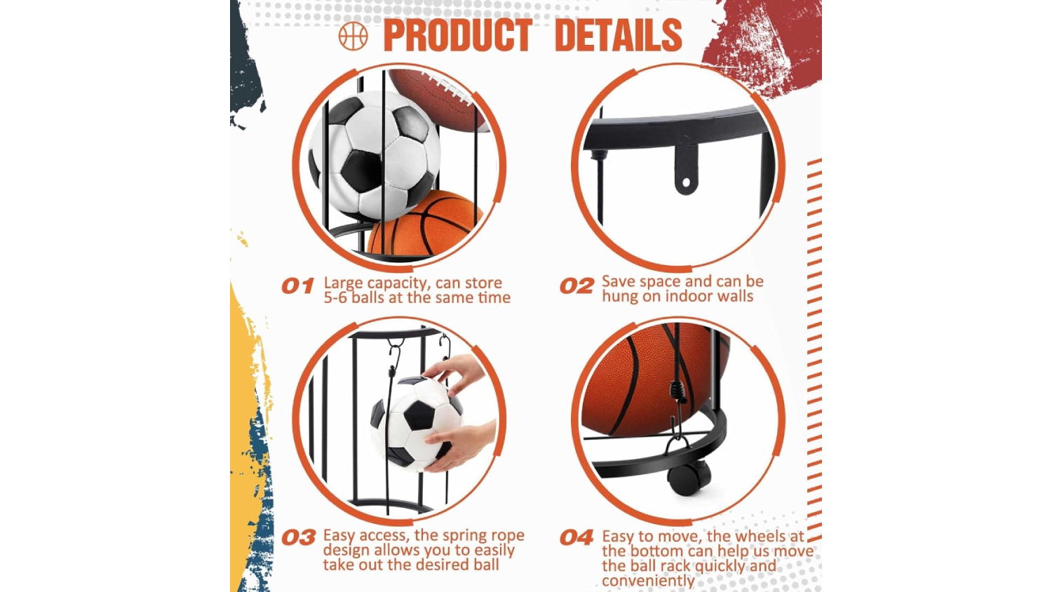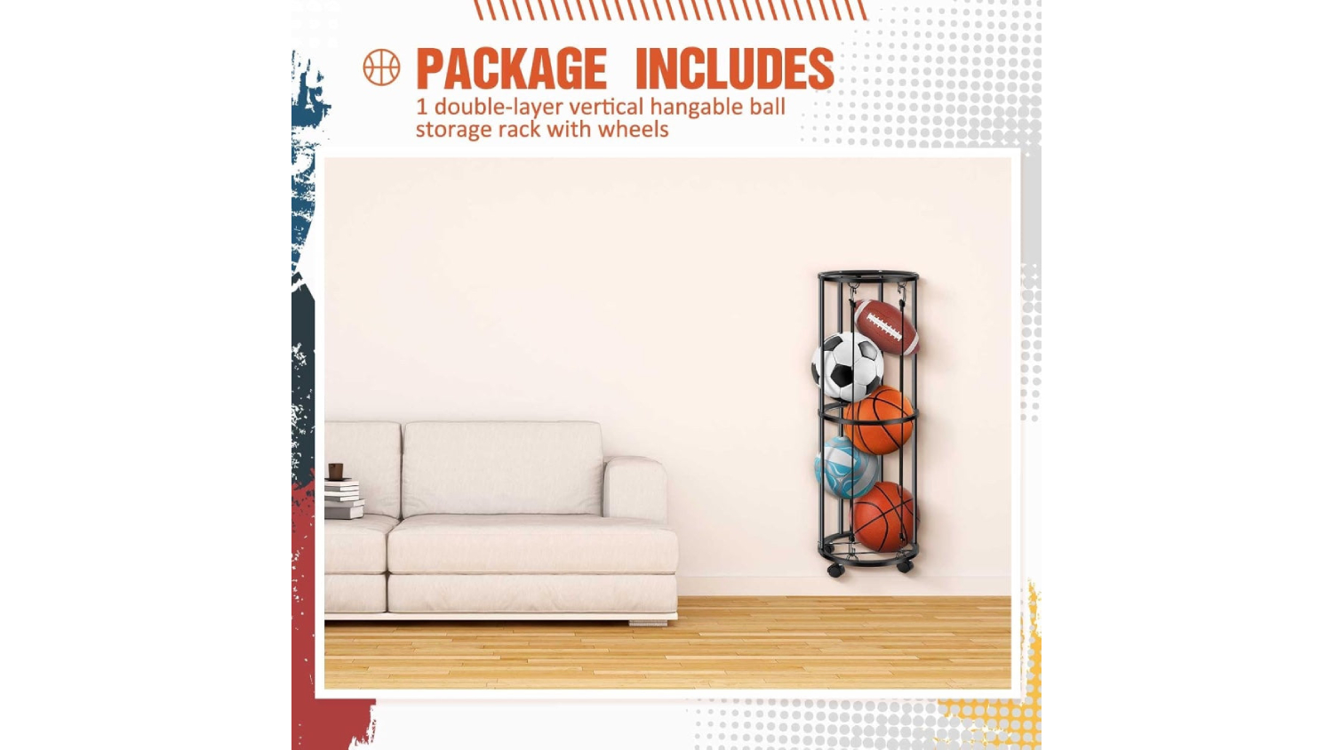 Organise your game balls simply and effectively with the Kmall Sports Ball Storage Tube. This unit is made with durable, double-layer carbon steel construction and a compact vertical design to save space. It holds 5–6 balls and gives you fast access via its smart spring rope. Plus, with integrated wheels, moving this sturdy rack around your home, gym, or garage is a breeze. You can also choose to place it on the floor or mount it on the wall!