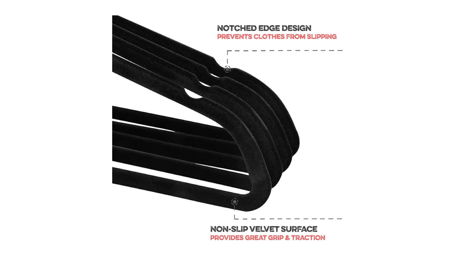 Level up your wardrobe with the Kmall Velvet Clothes Hangers. This 50-piece set offers a beautiful velvet non-slip surface and practical notches, keeping all your delicate and strappy items securely in place. Crafted to be stronger than regular hangers with durable ABS plastic and steel, it won't sag under the weight of heavy coats. Plus, its slim profile and convenient 360-degree swivel hooks maximise your closet space and simplify organisation!