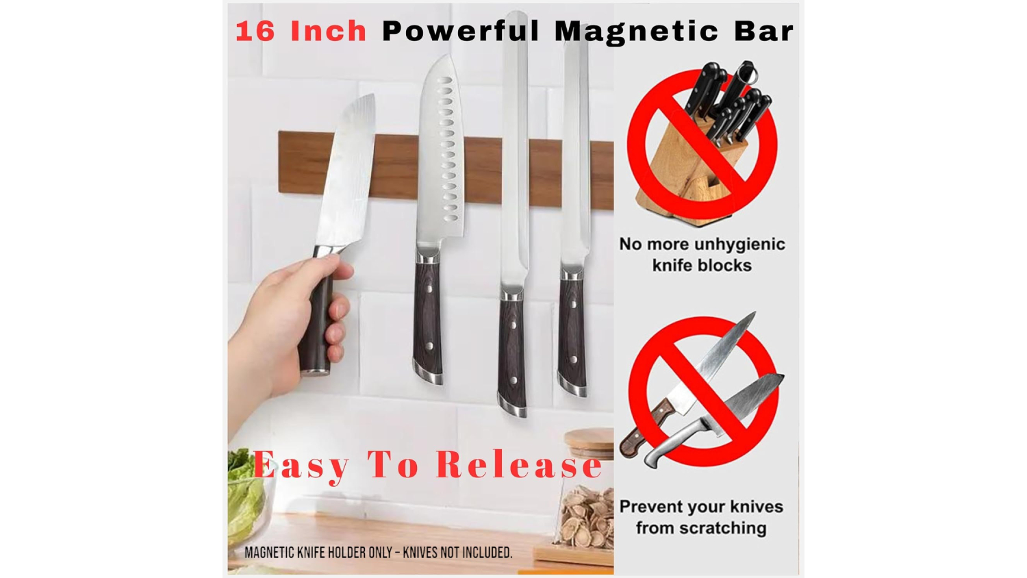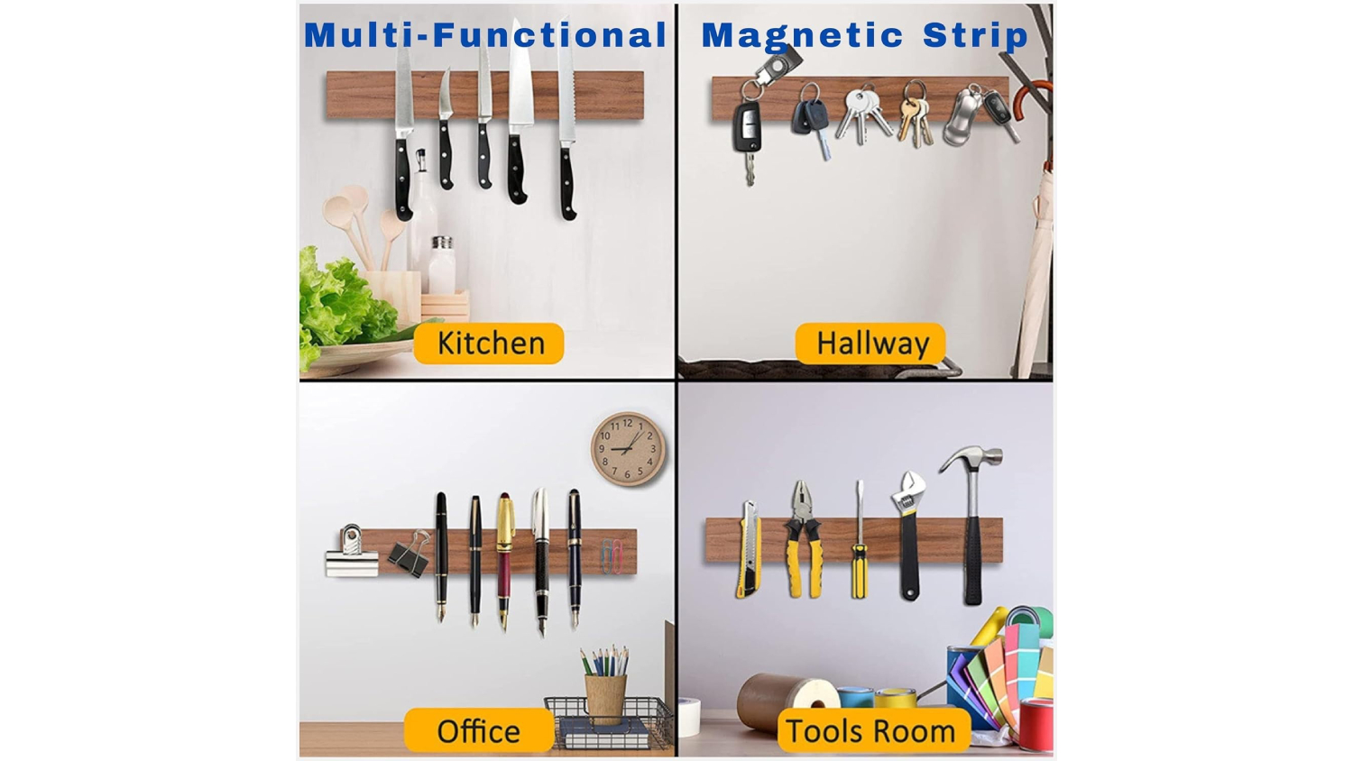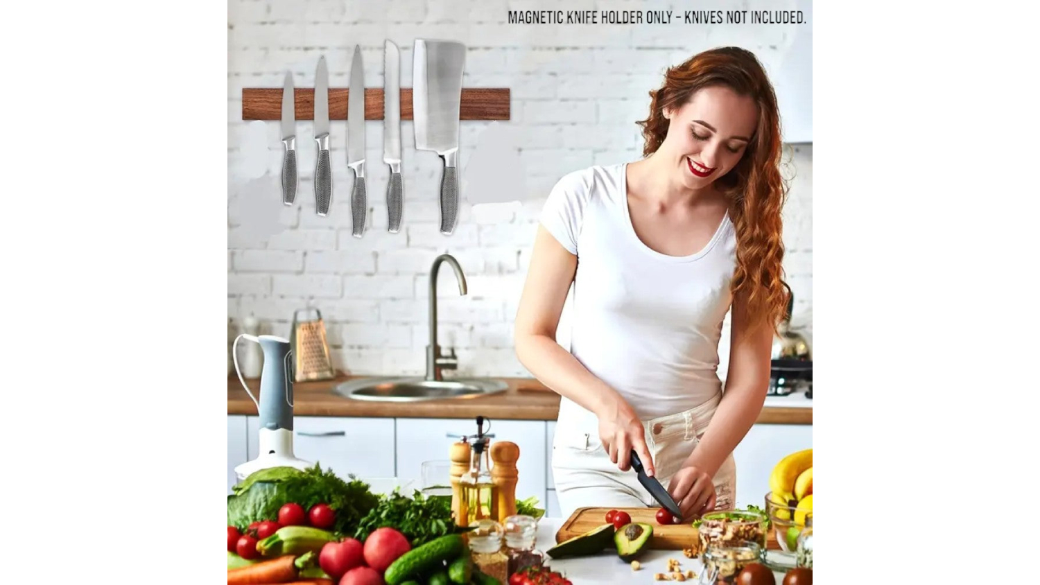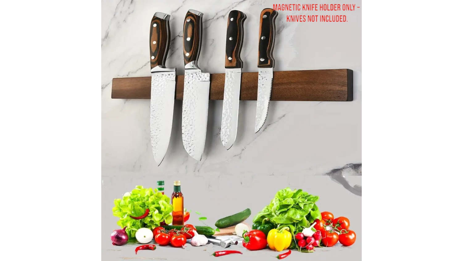 Keep your kitchen stylish and clutter-free with the Kmall Wall Mountable Magnetic Knife Strip. Crafted from high-quality acacia wood, each piece features a unique natural grain that adds warmth to your space. The powerful embedded magnet securely holds your knives, scissors, and other metal tools, while the sturdy back panel ensures long-lasting durability. Easy to install with both drilled and adhesive options, it’s the perfect blend of beauty, function, and convenience for any modern kitchen.