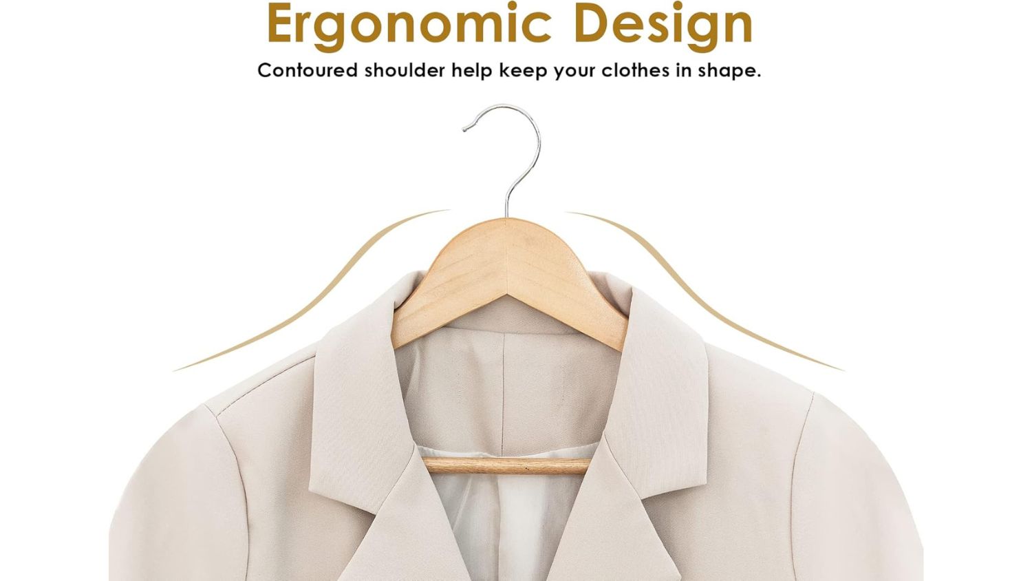 Achieve a stylish and organised wardrobe with the Kmall Wooden Clothing Hangers. Made from durable wood, these lightweight hangers support heavy coats and suits with ease. They feature a non-slip surface and crucial shoulder notches to prevent strap slippage. The timeless design adds elegance, helping clothes maintain their structure and providing lasting durability.